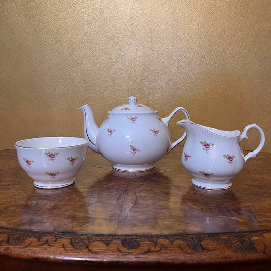 Vintage Duchess Rose Print Tea Pot, Milk & Sugar Set