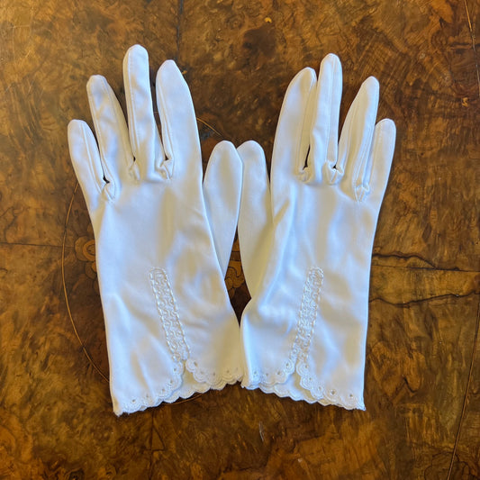Vintage Ivory Embroidered Edge Ladies Gloves