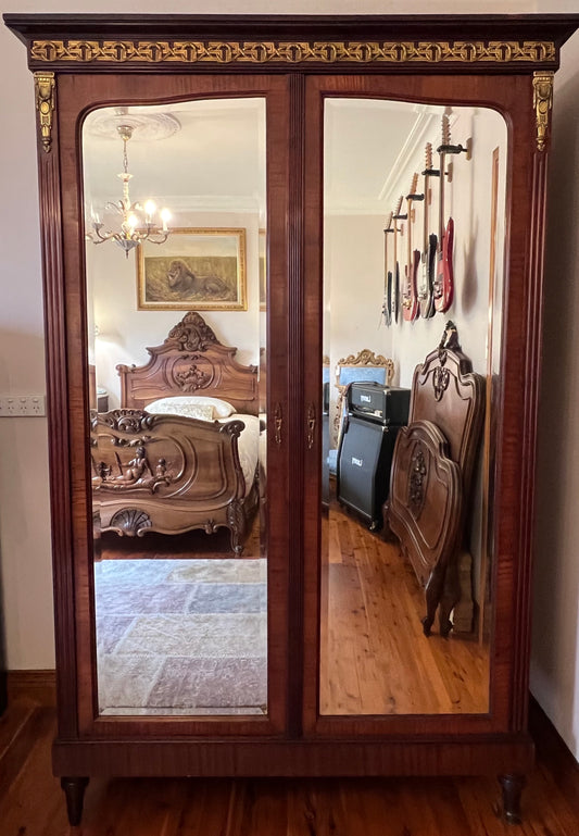 Antique French Walnut Two Mirror Door Wardrobe Armoire