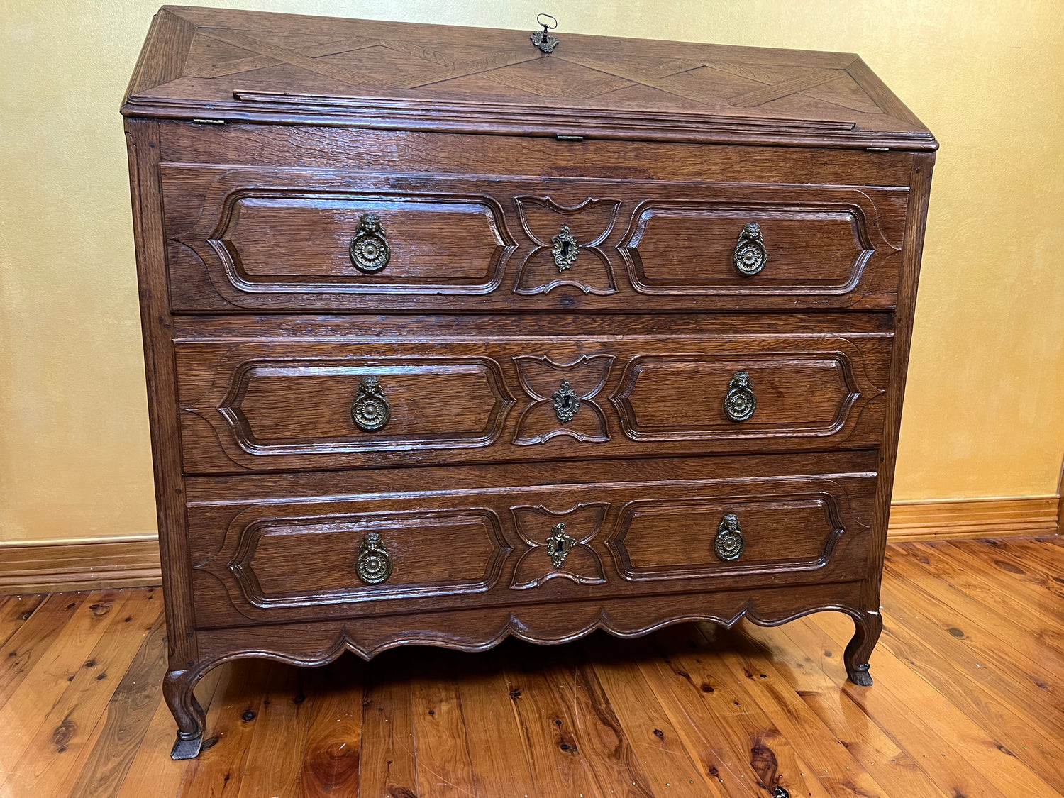 Antiques Yeah's craftsman French Polished this 1700s oak antique bureau.