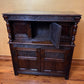 Description: Carved detail borders with on door to top part of cabinet and two doors below, two shelves to bottom, there is carved detail through cabinet, this item has been French Polished, this cabinet was used in the old court house.