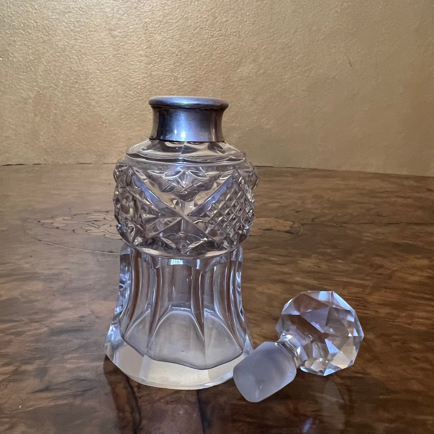 02136Antique 1909 Perfume Decanter W Sterling Silver Trim