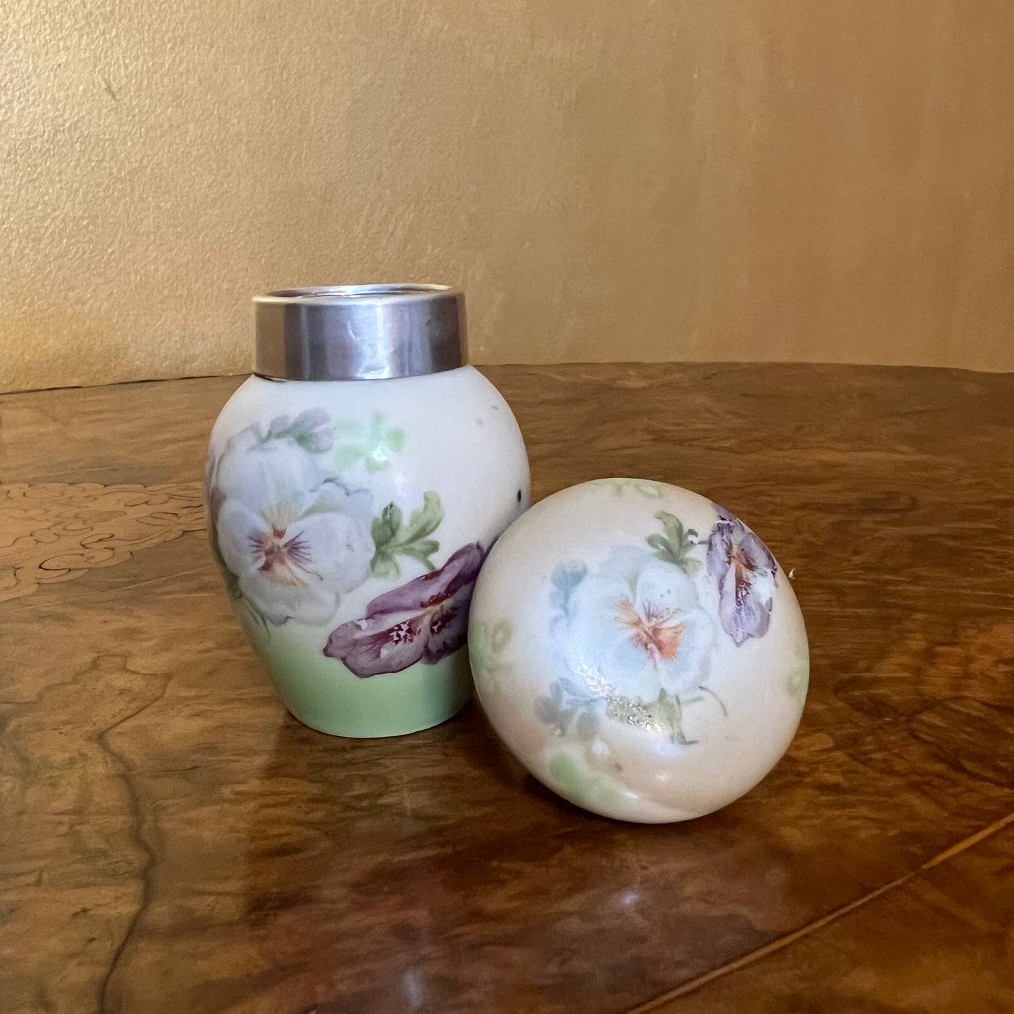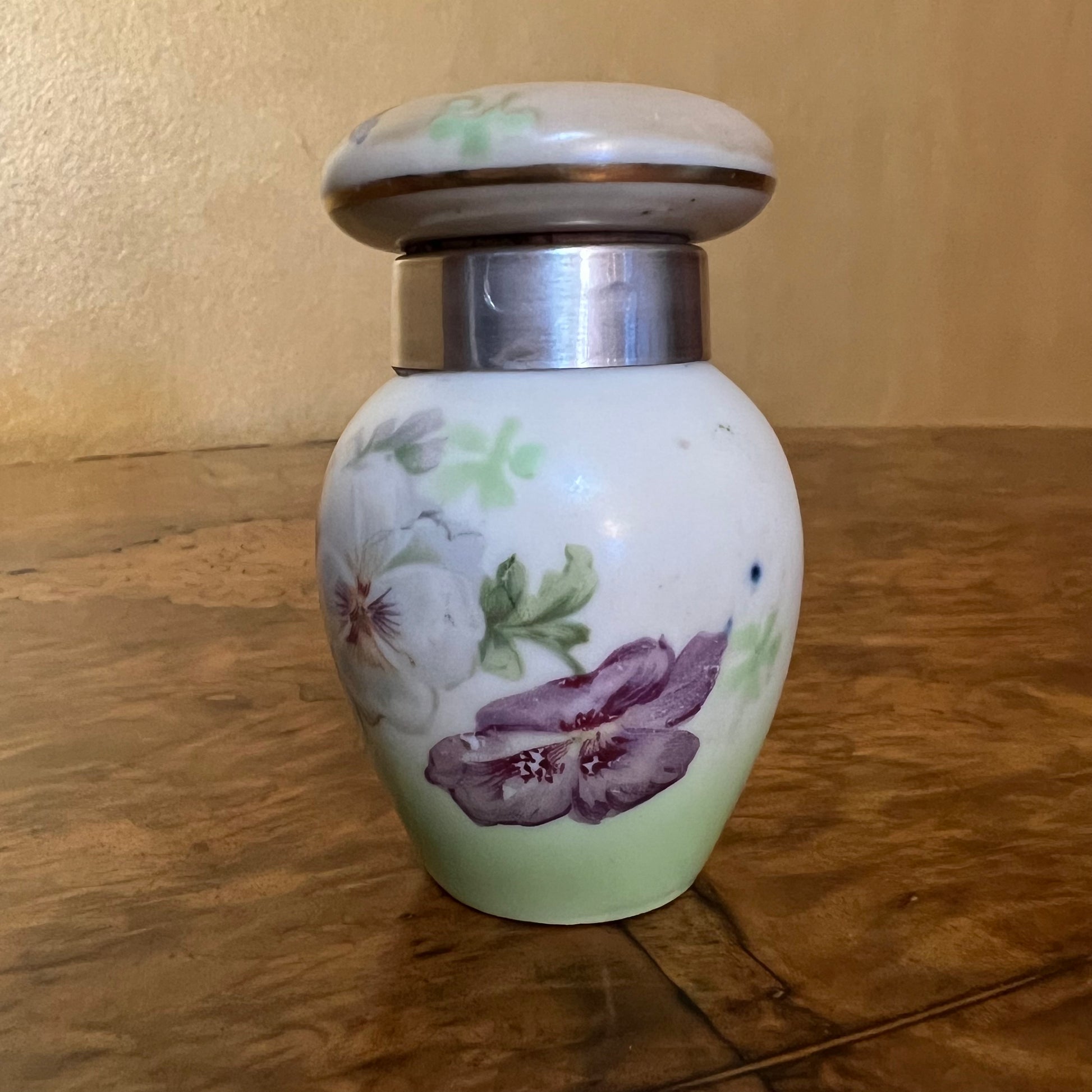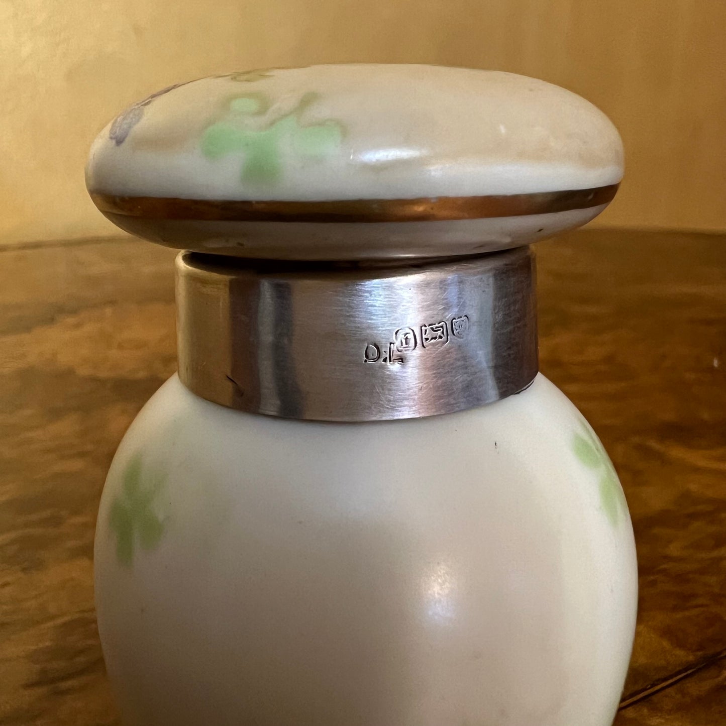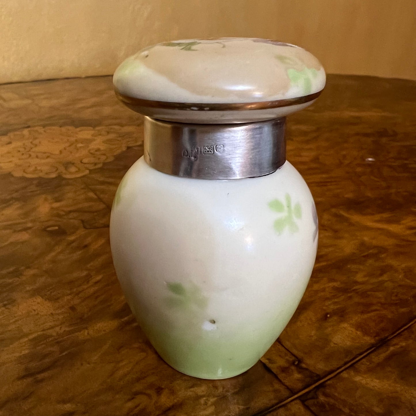 Antique 1912 Serling Silver Rim Porcelain Smelling Salt Jar