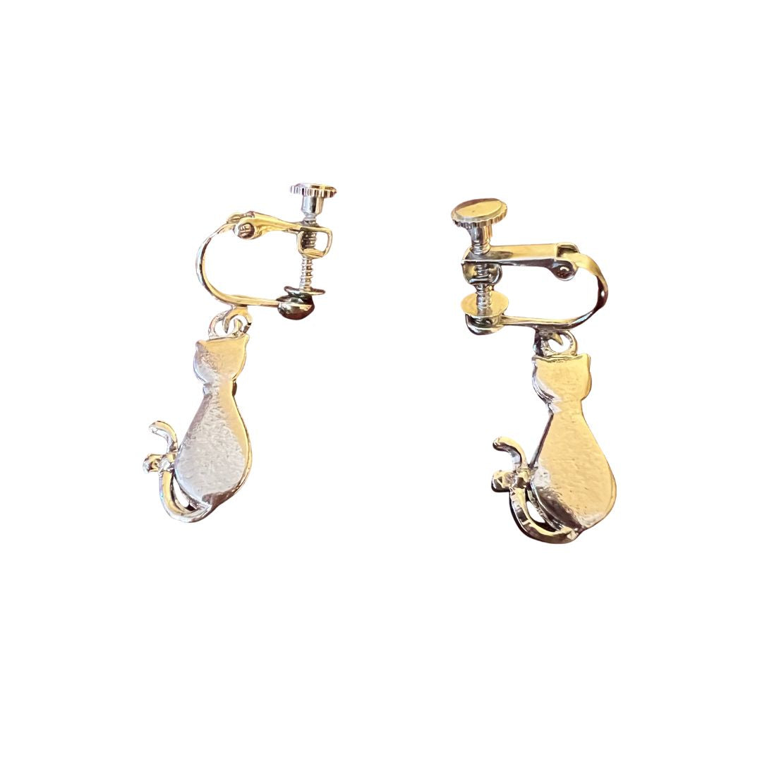 Description: Cat is covered in diamonti, clip on earrings, jewellery is preowned and is sold in "as is" condition.