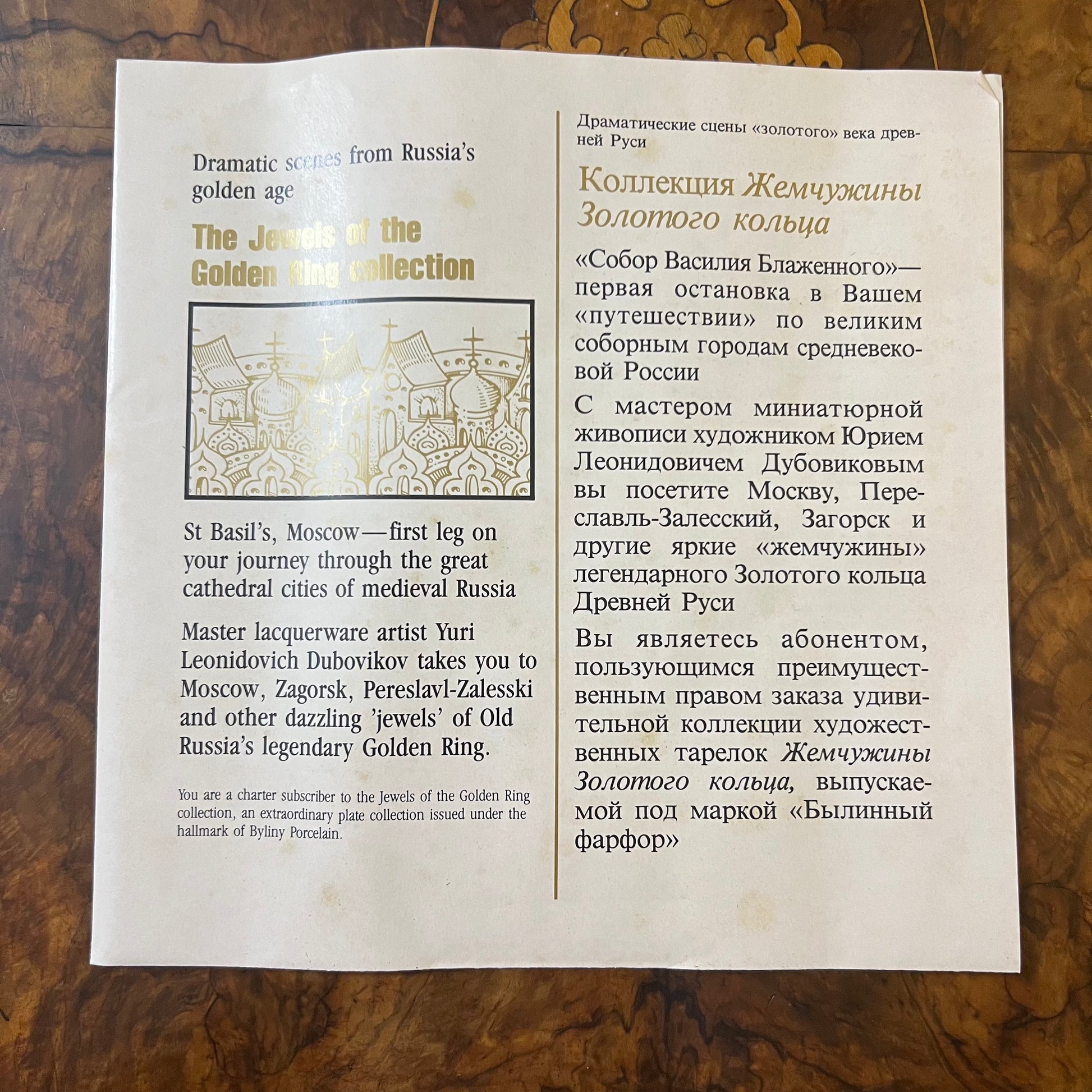 Description: St Basil's Moscow printed plate, comes with Certificate of Release.