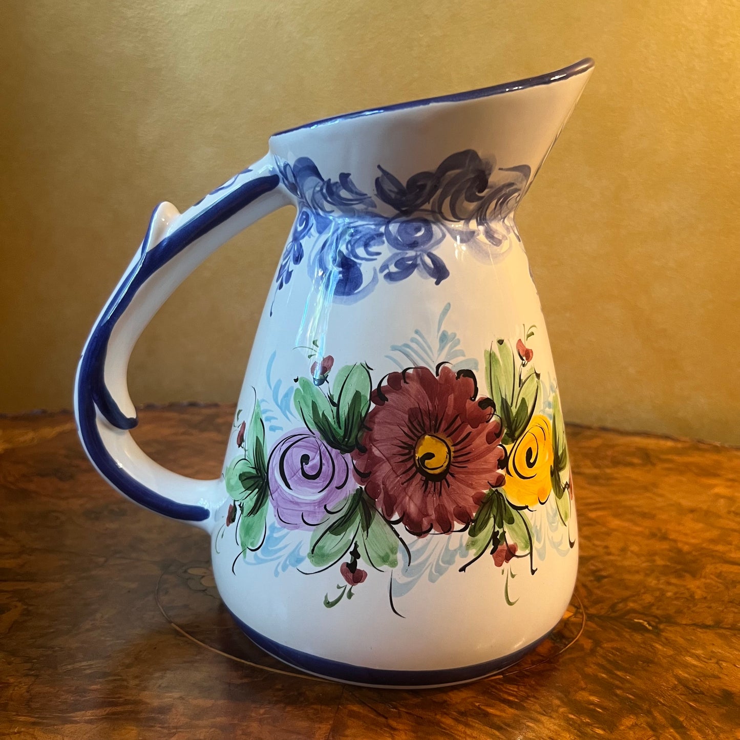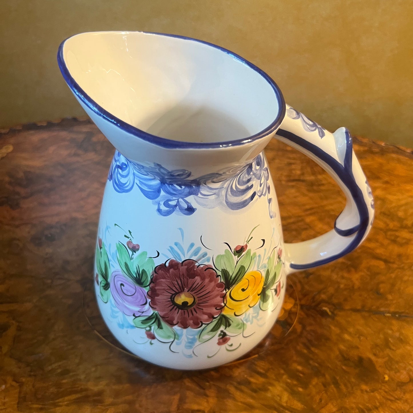 Floral pattern with blue trimming, stamped Vestal Hand Painted Portugal