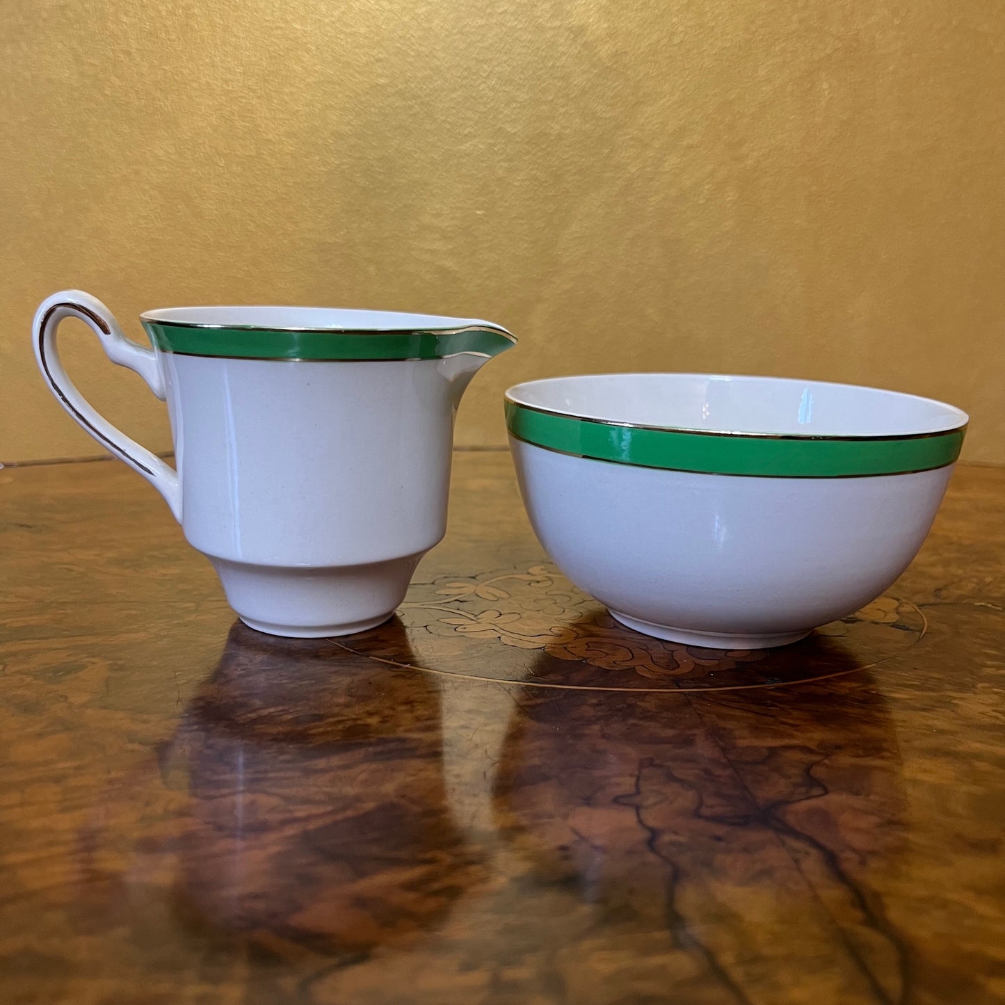Vintage Alfred Meakin Green Border Milk & Sugar Set