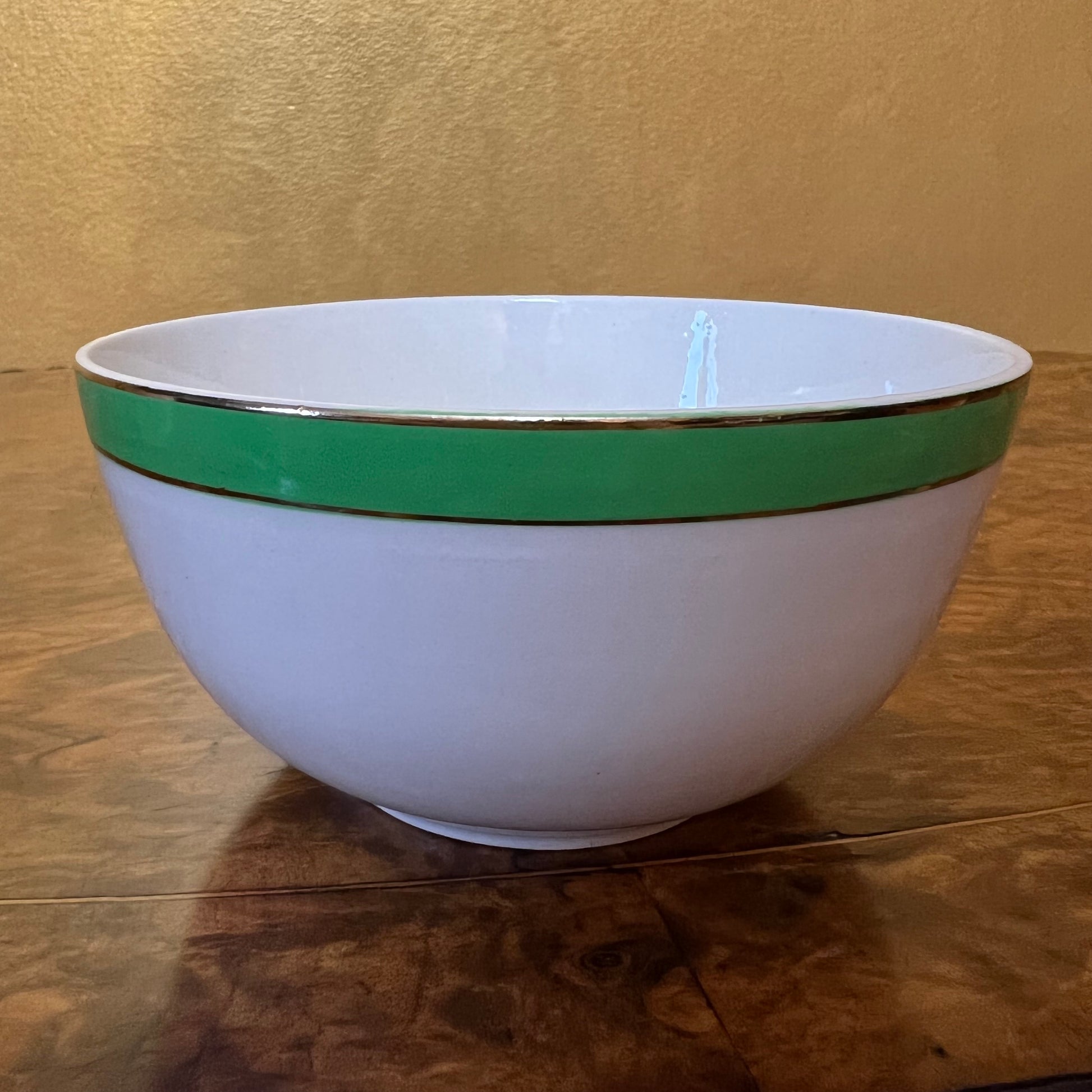 Description: Green border and gold trim, slight crazing, stamped Alfred Meakin