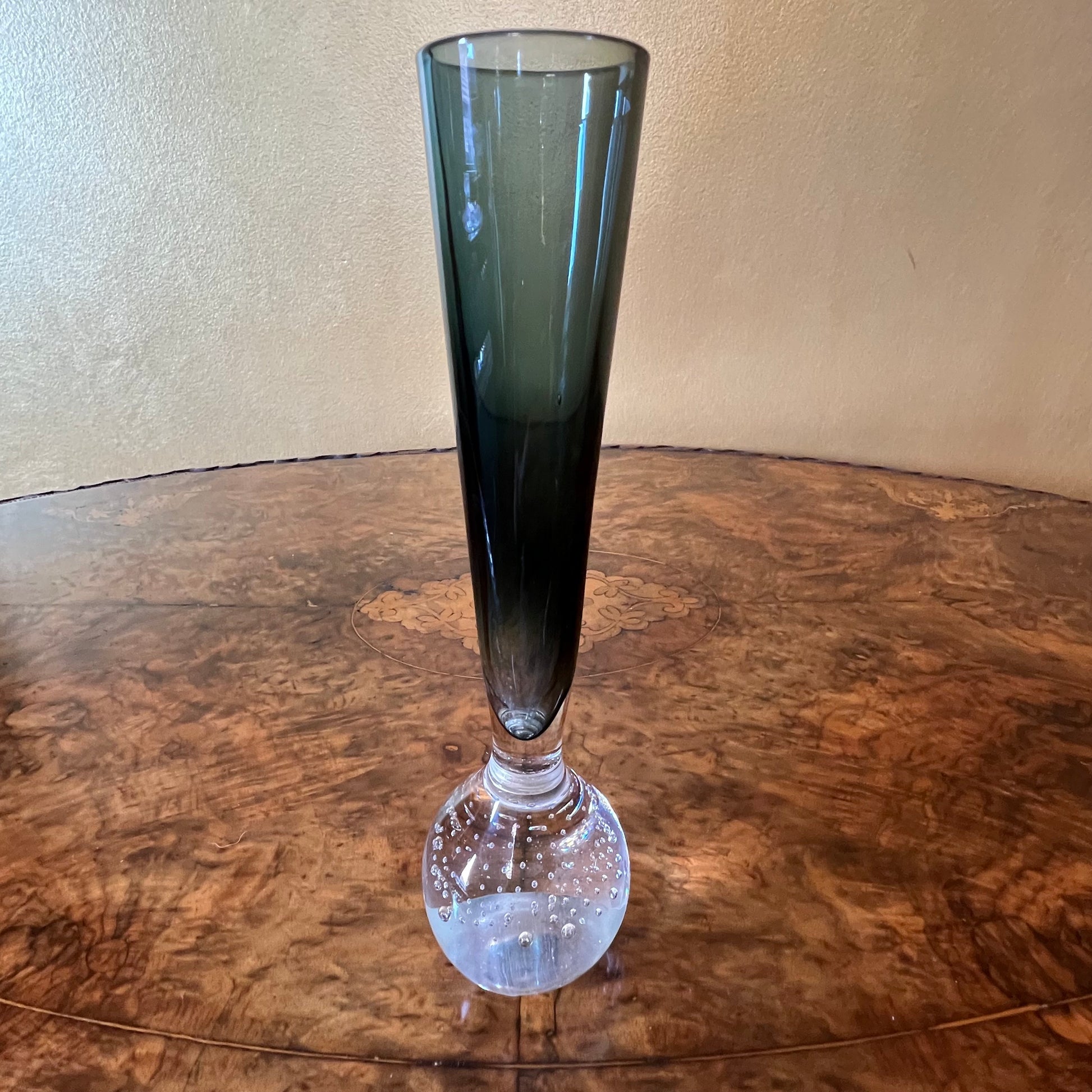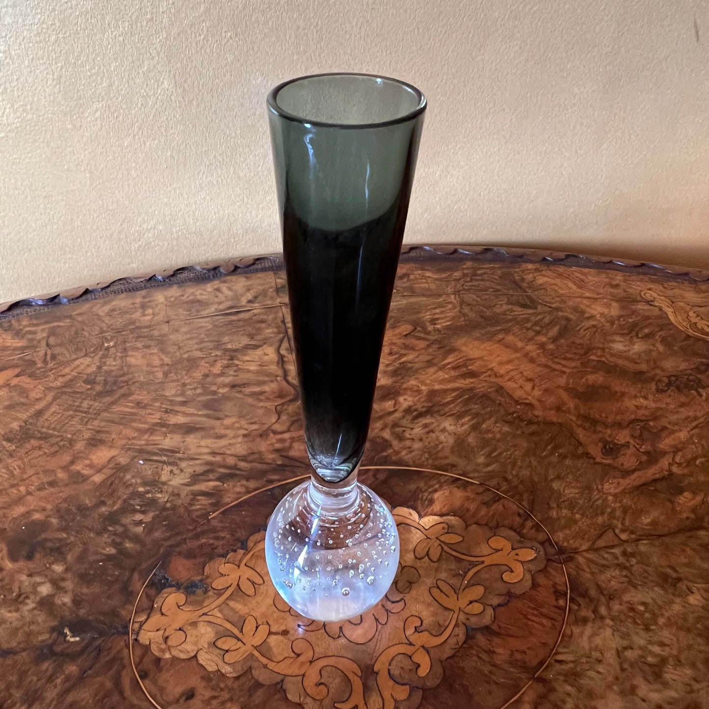 Description: Colour are greyish blue and green depends on the light around, bottom has a bubble like effect