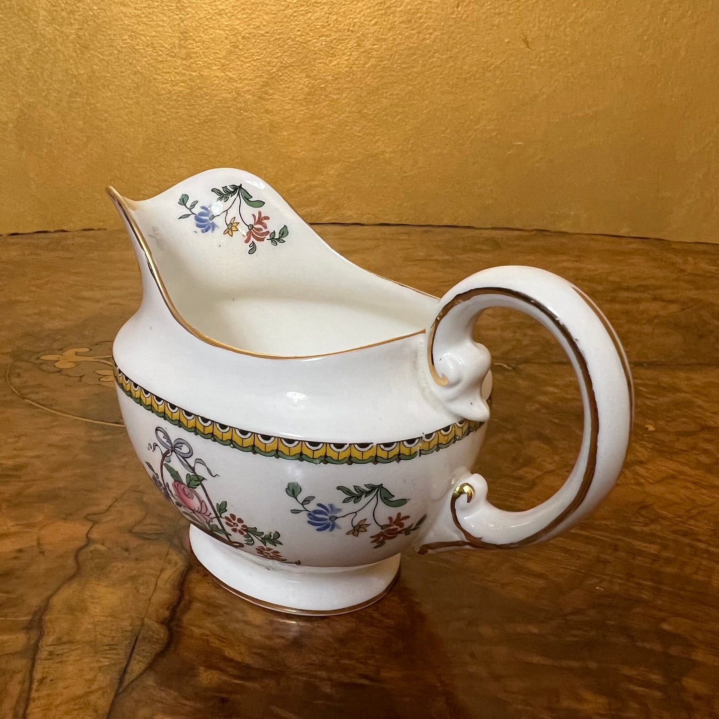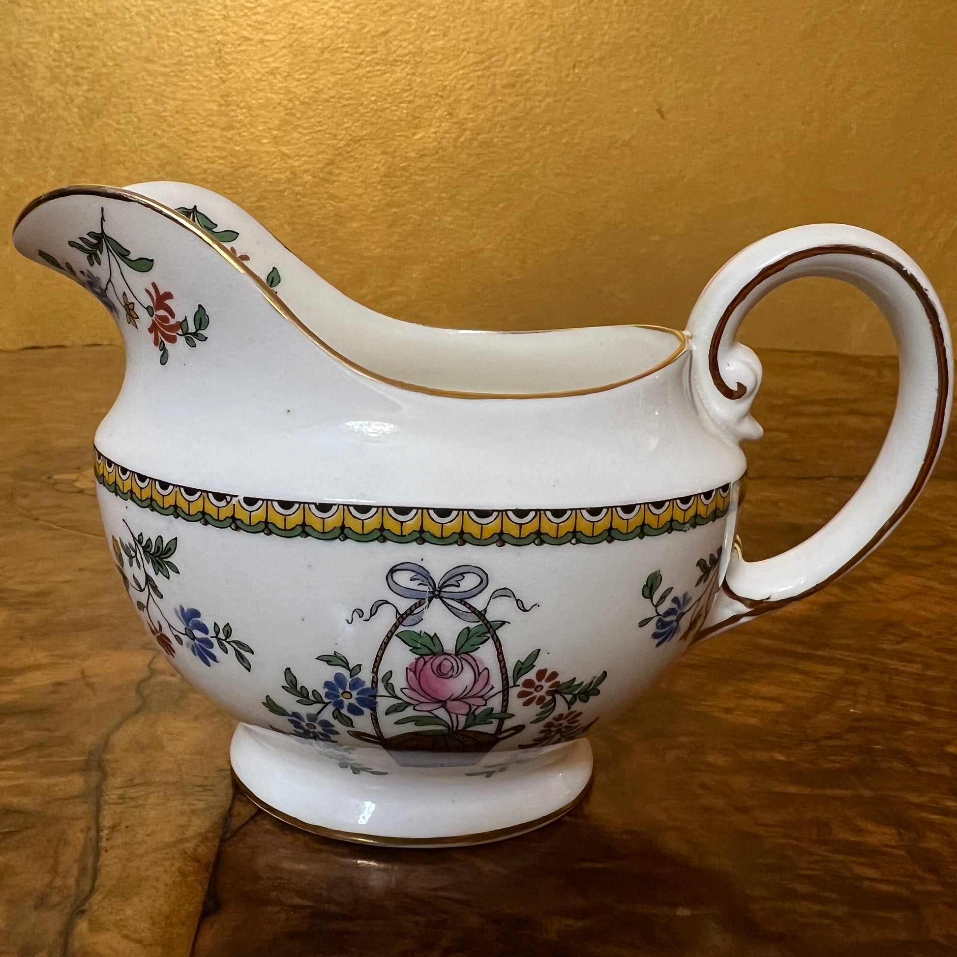 Description: Floral print in basket with gold trim, some wear to print and gold trim, crazing, stamped Aynsley