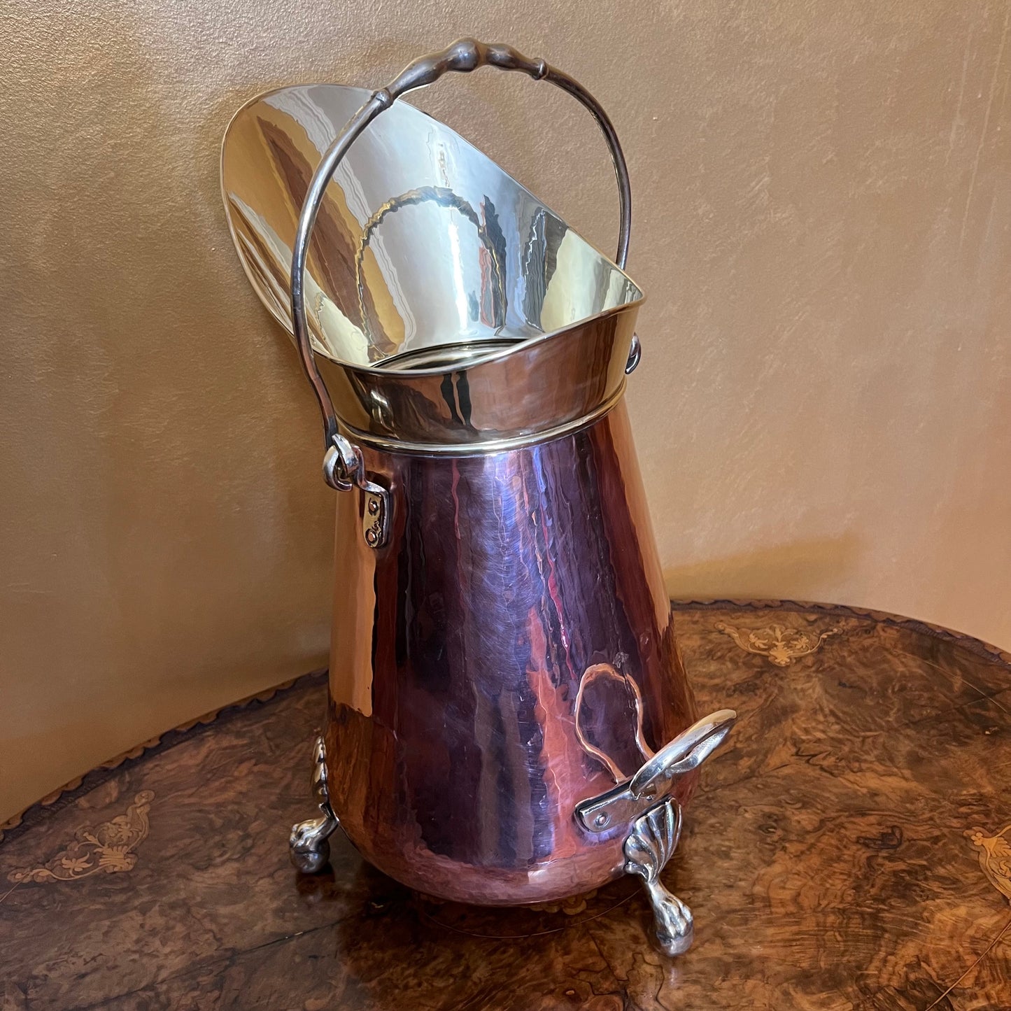 Description: Very Cute scuttle that has handles to be able to poor water out easily, has claw feet and shell like detail on front and all legs, can be used as an umbrella holder, decorative vase or just put on display. This item has been polished to look as new.