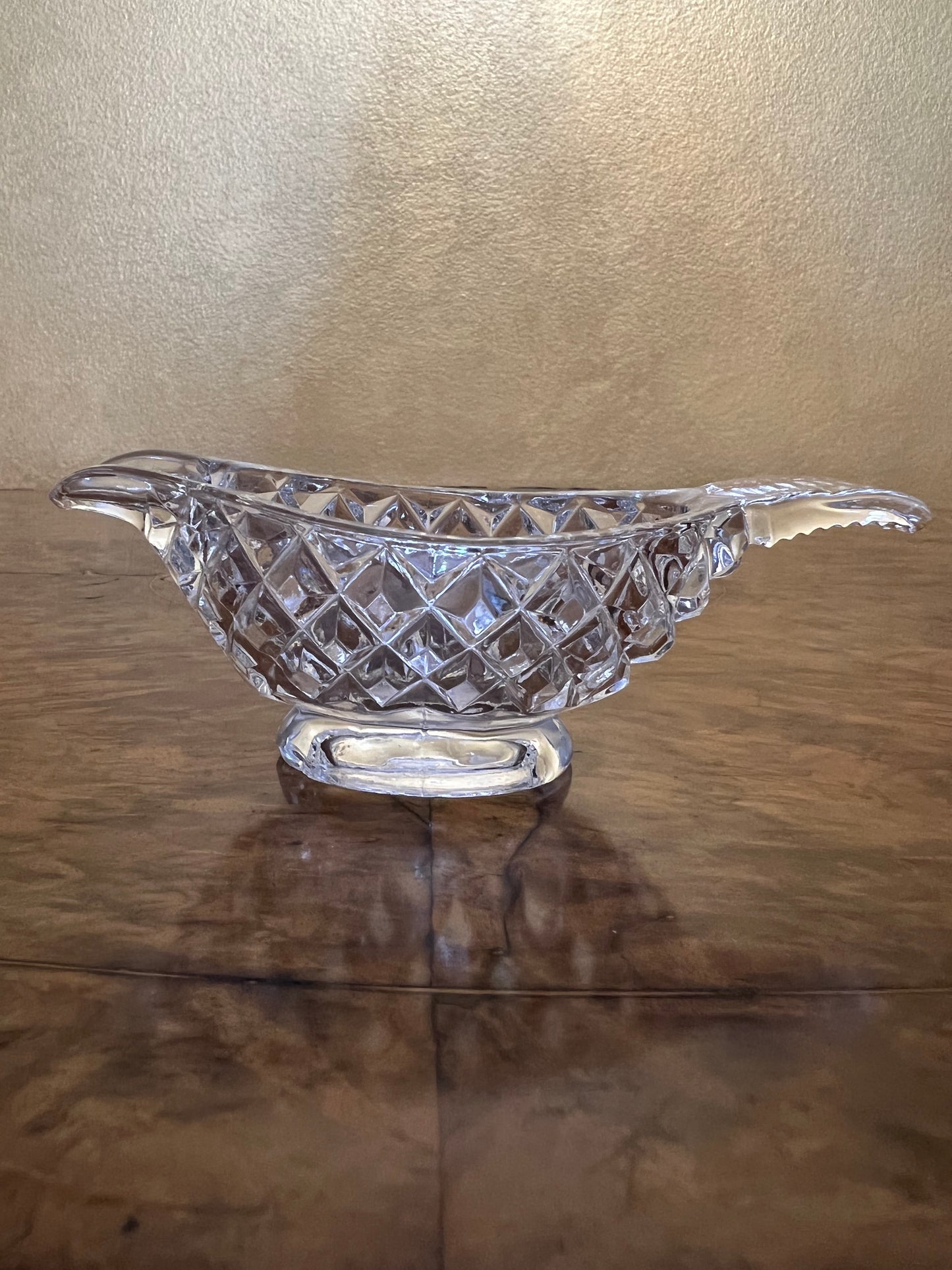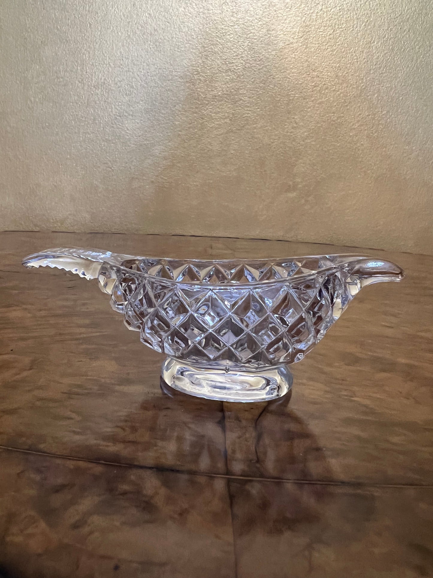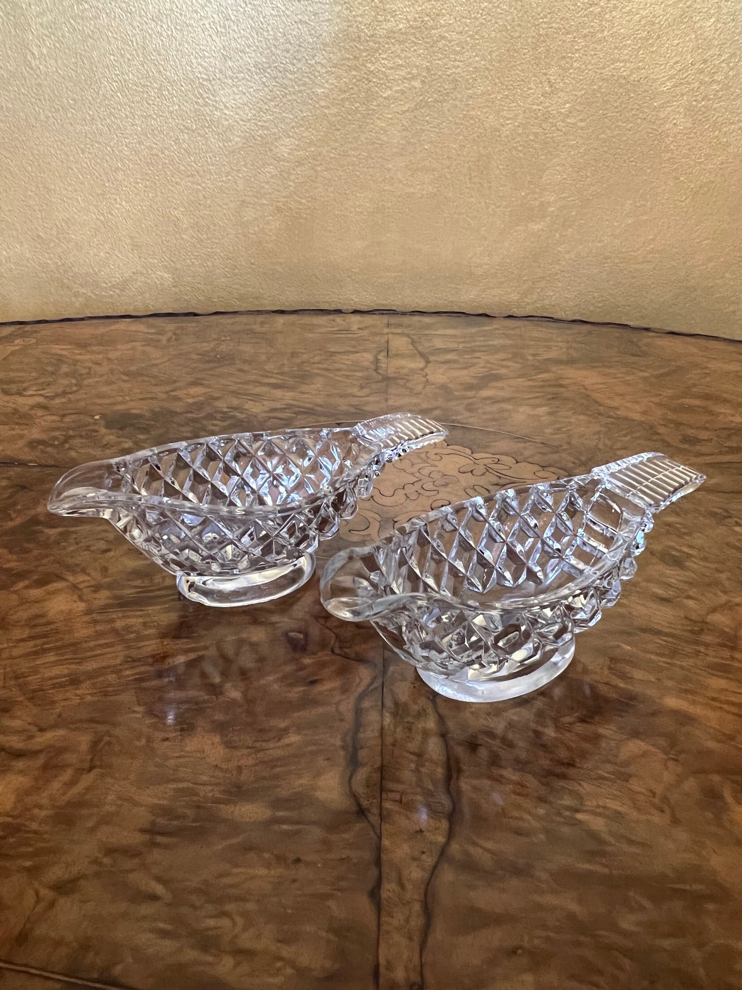 Description: Diamond cut design in glass pattern, pair of gravy boats.