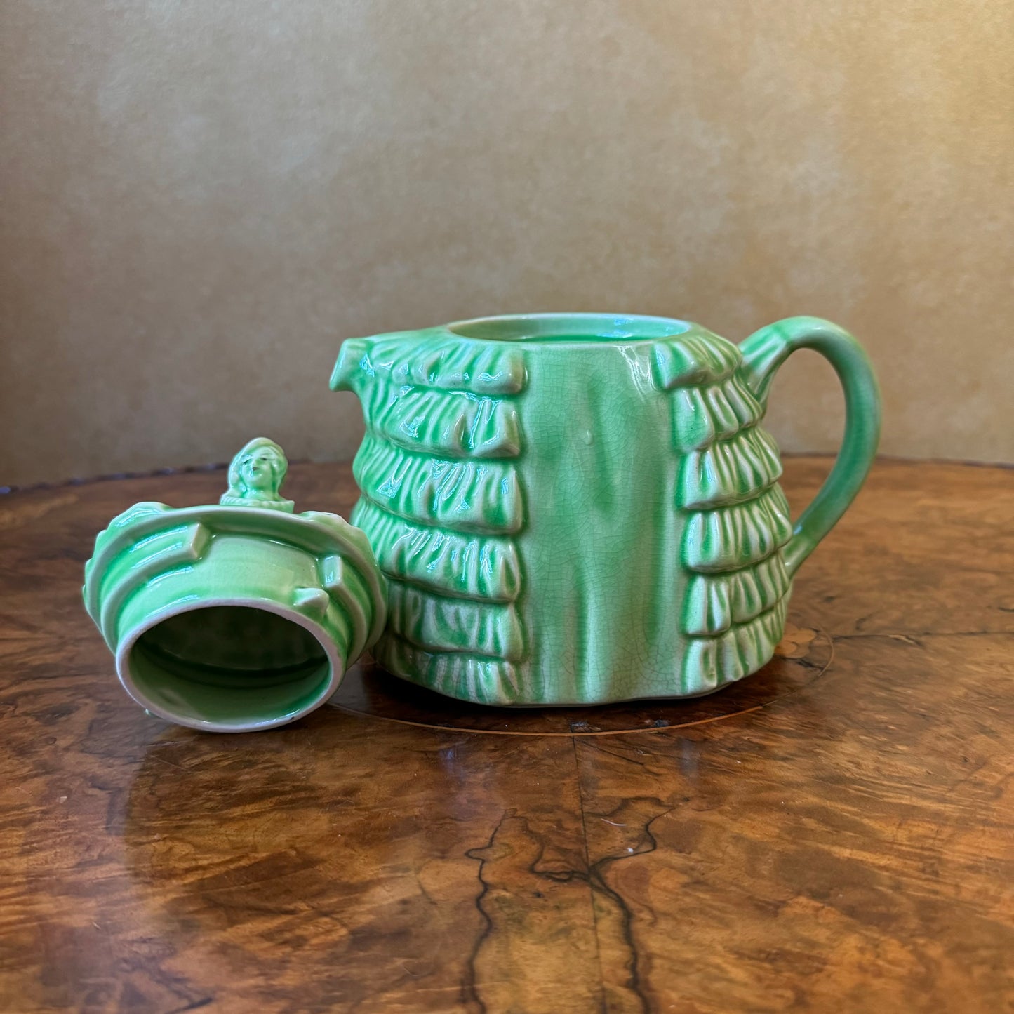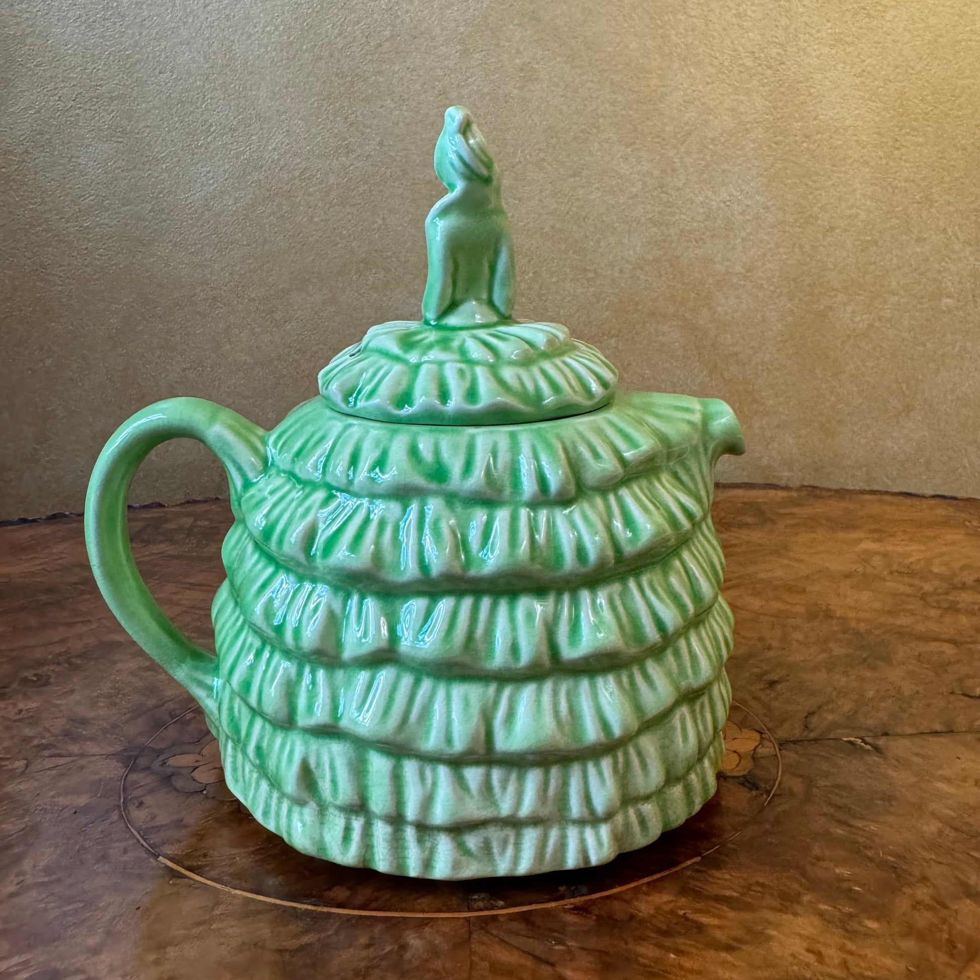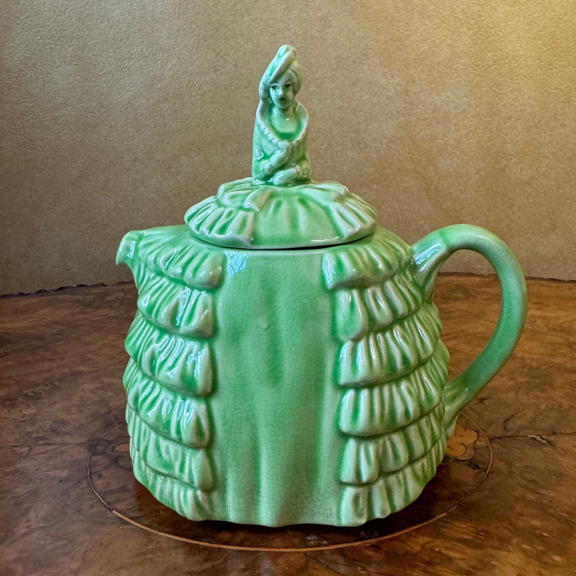 Description: Green with lady top and bottom dress, crazing to tea pot.