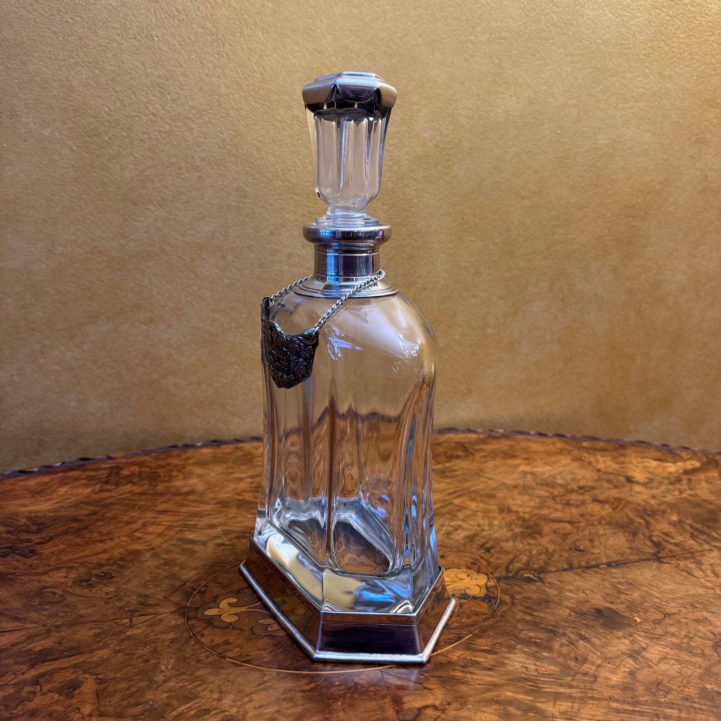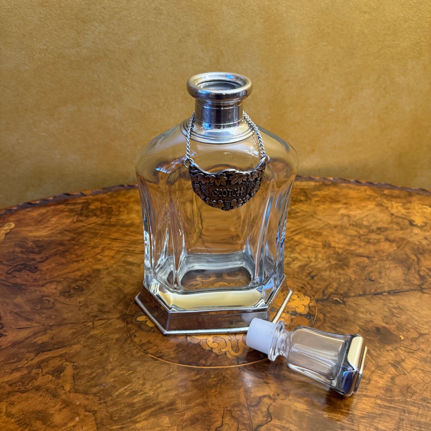 03808Vintage Italian Pewter Etain Zinn 95%Glass Whiskey Decanter