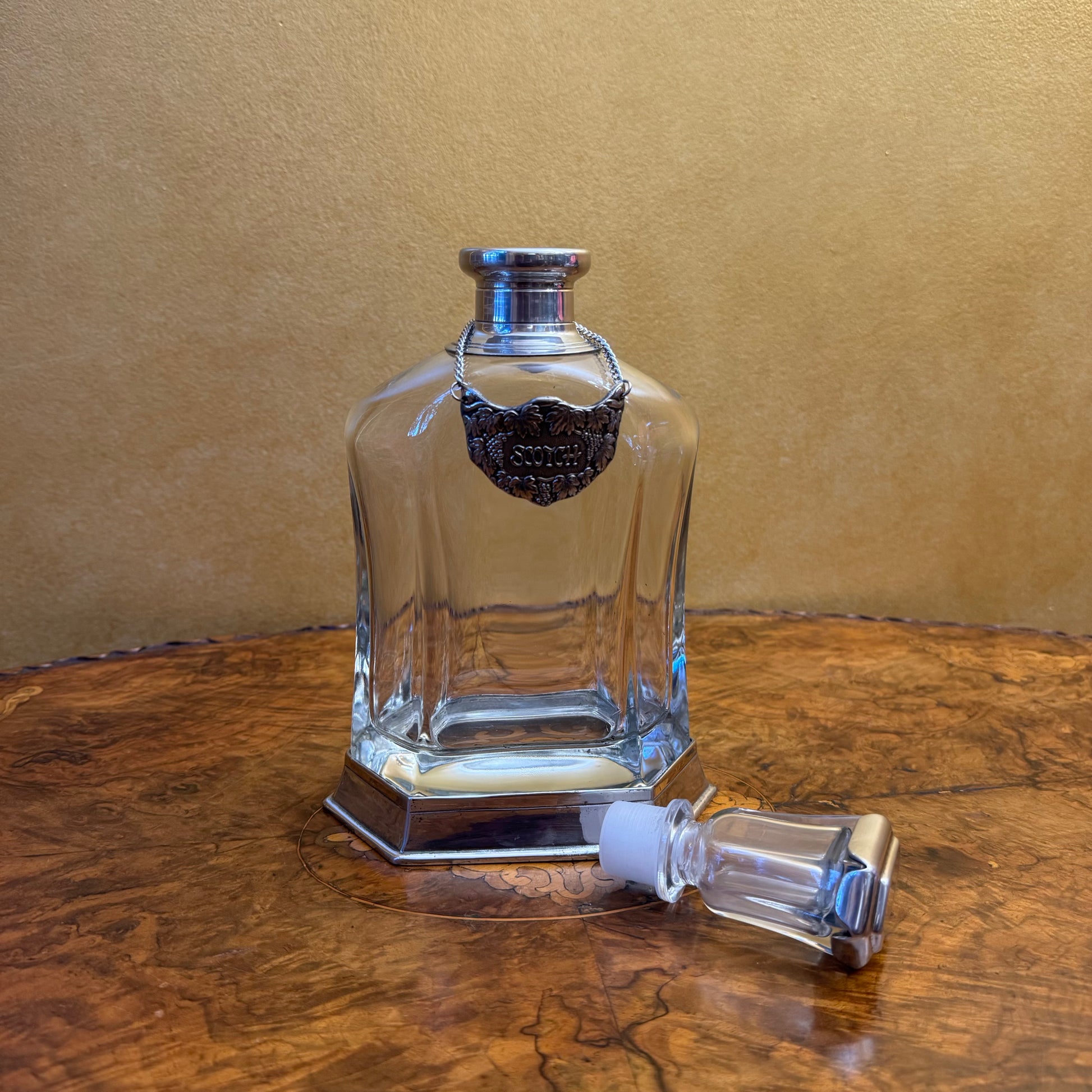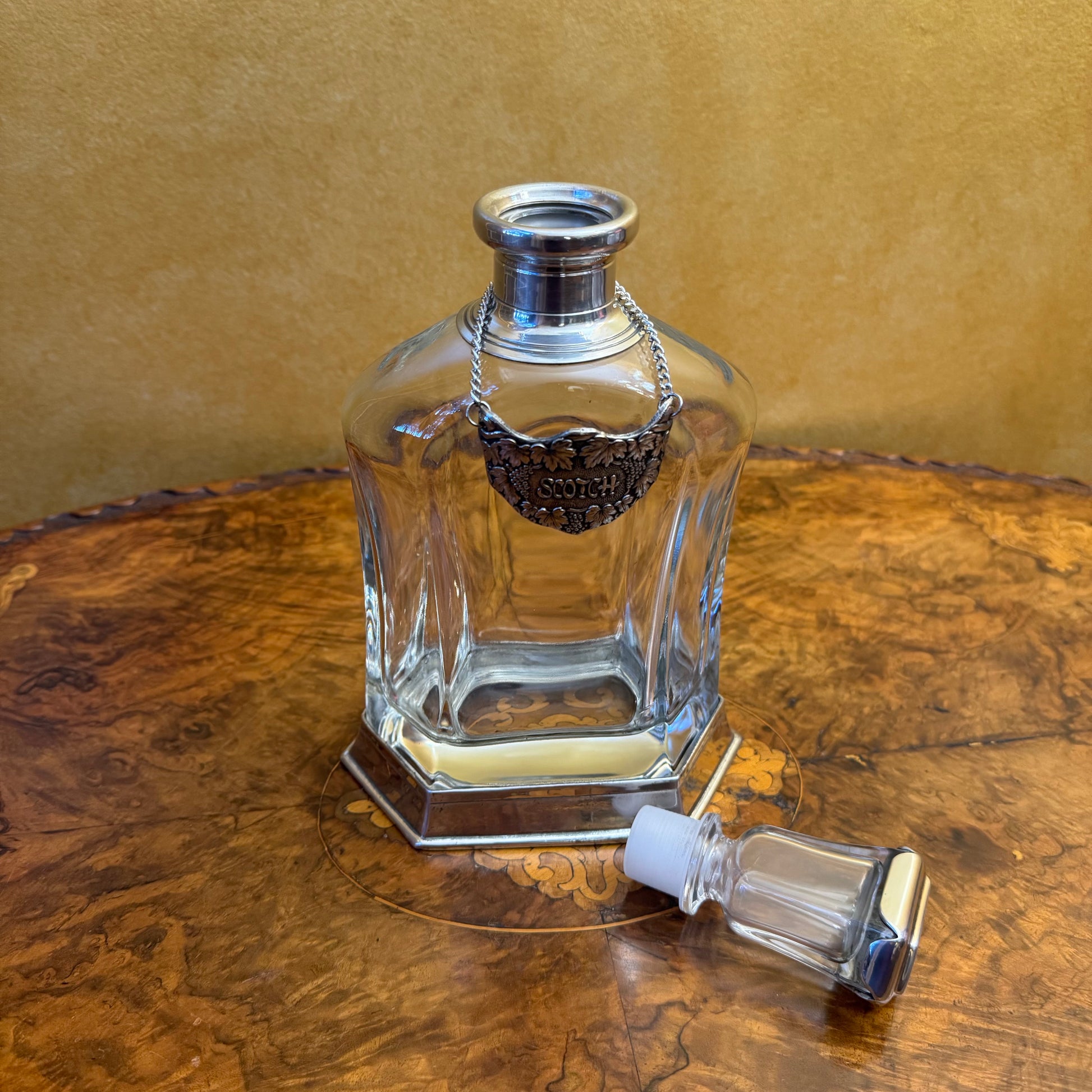 Vintage Italian Pewter Etain Zinn 95%Glass Whiskey Decanter