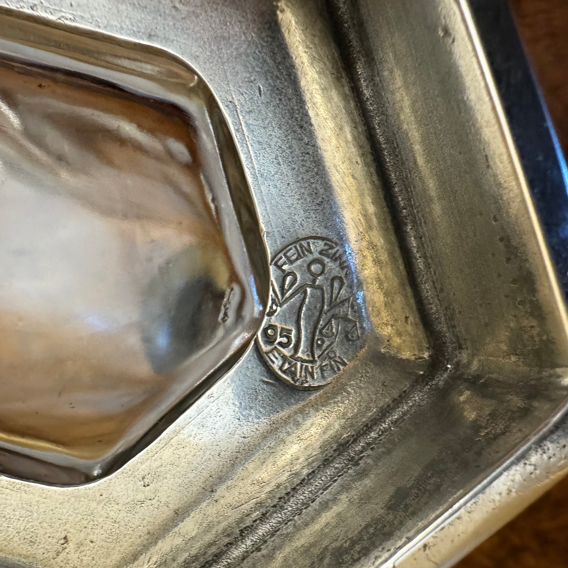 Description: Pewter Etain Zinn 95% stamped on base, glass decanter some wear and marks to metal.