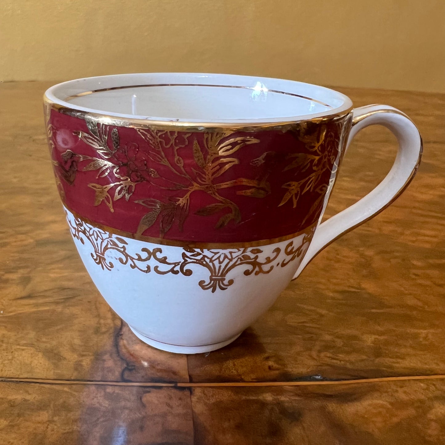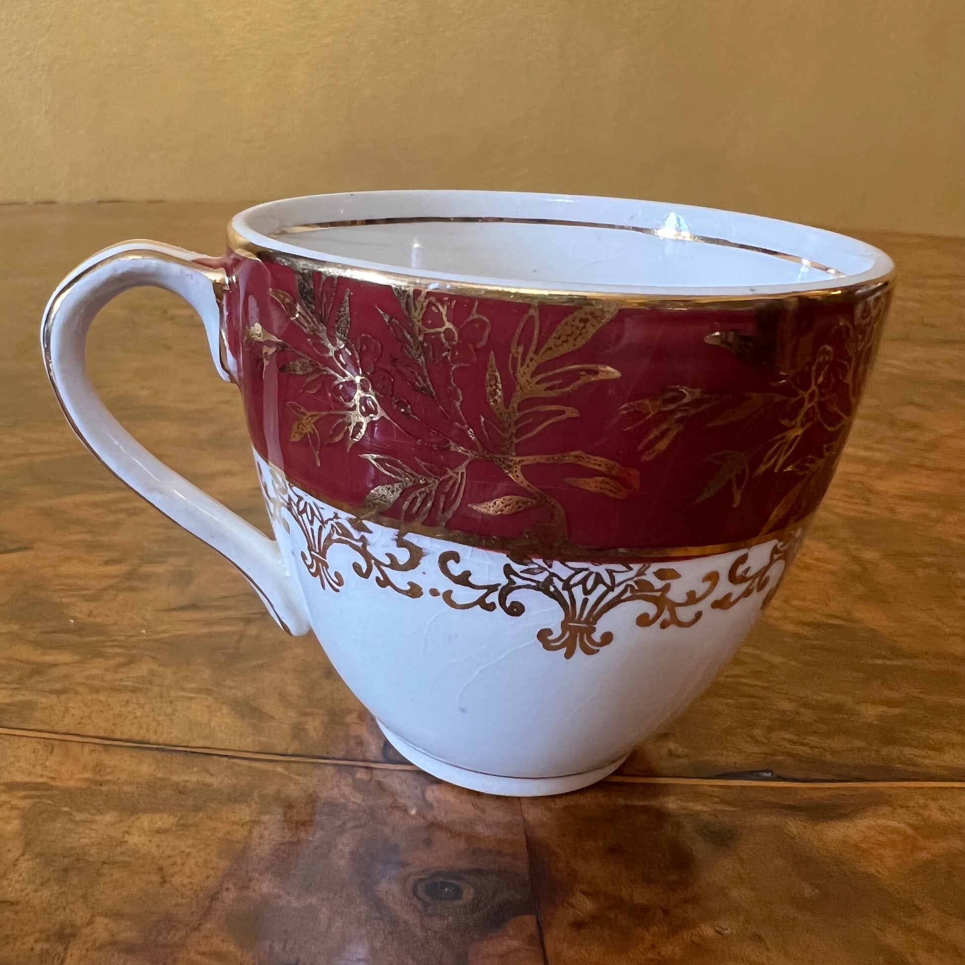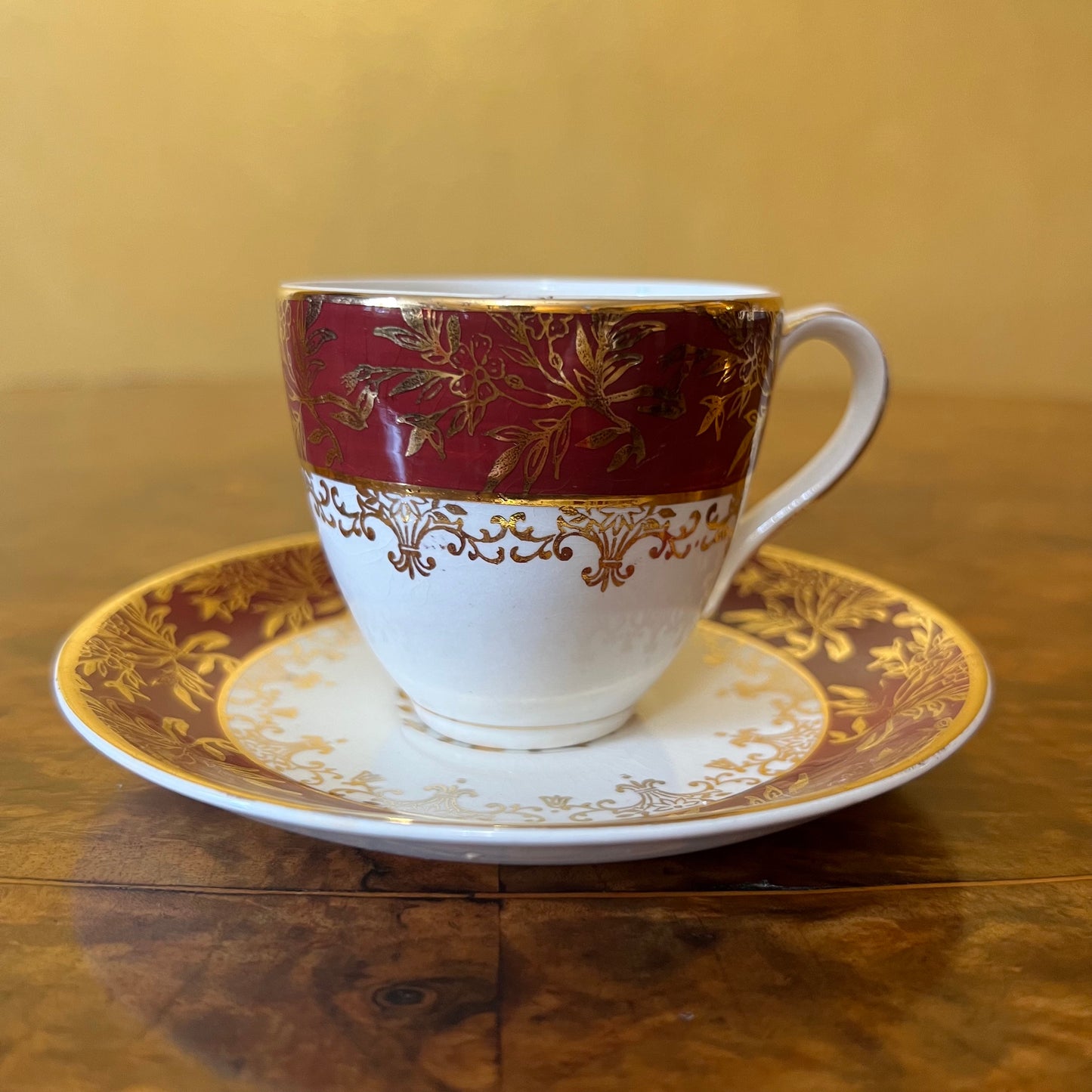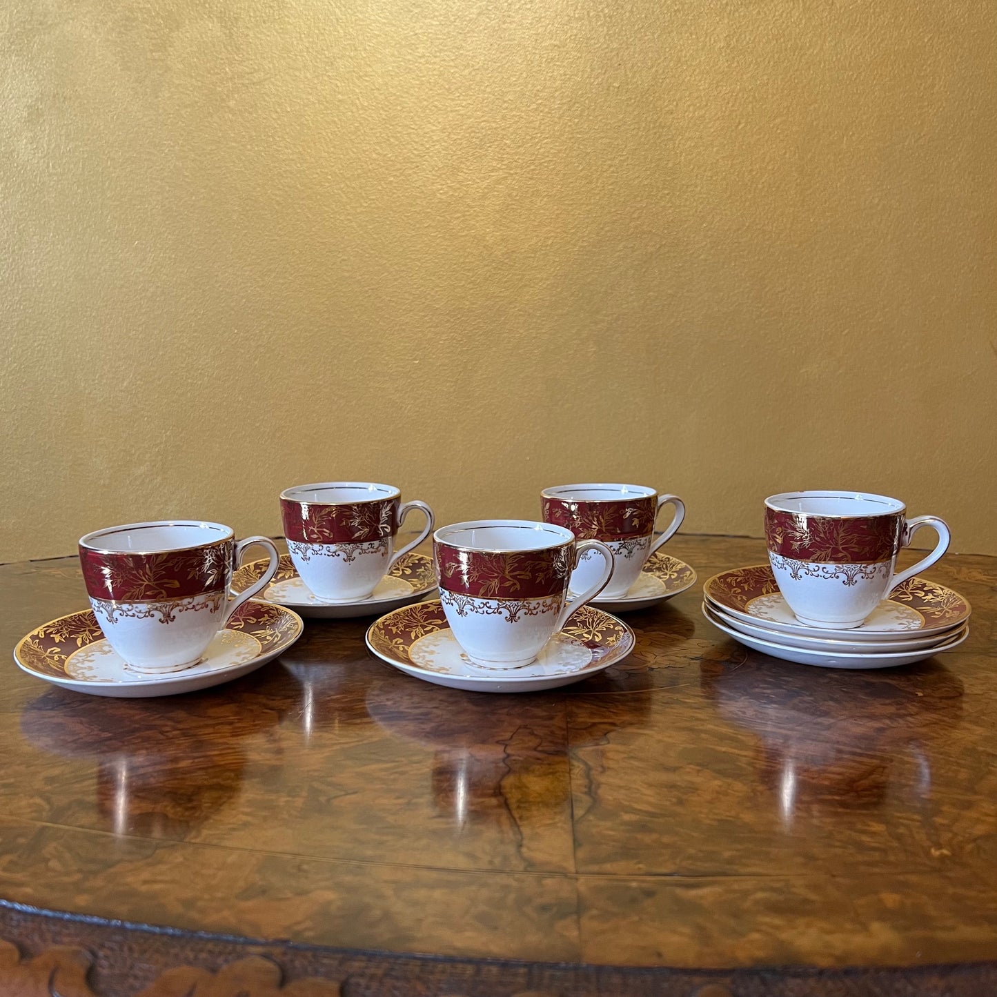 Vintage J & G Meakin Burgundy/Gold Demitasse Coffee Cup & Saucer Five Sets