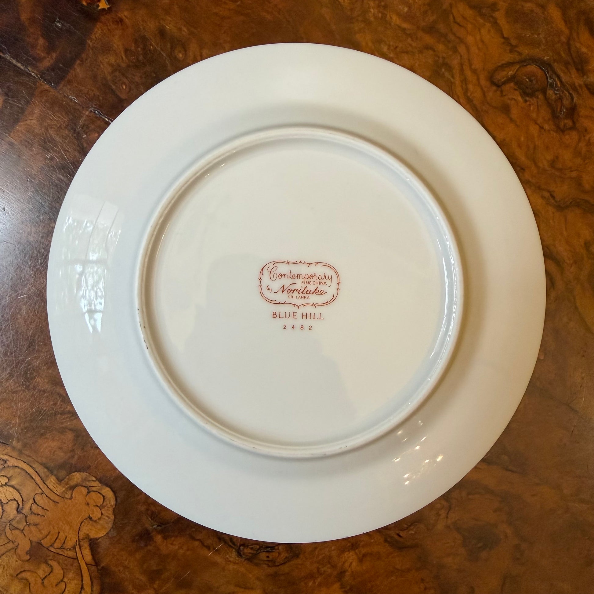 Description: Blue floral print with silver trimming, stamped Noritake Blue Hill, some wear to silver trim.
