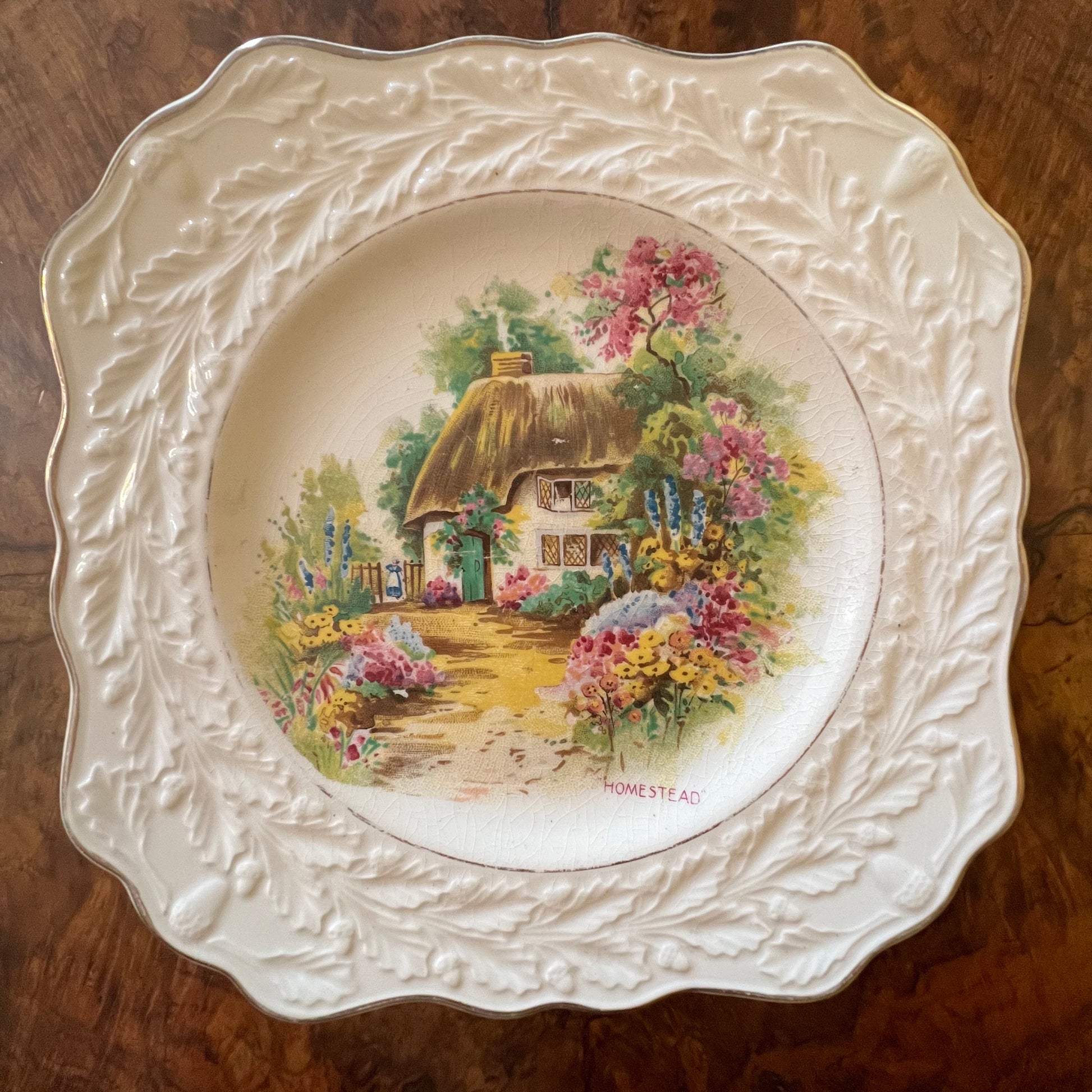 01175Vintage Old English Oak Staffs Teaset Co Homestead Print Plate