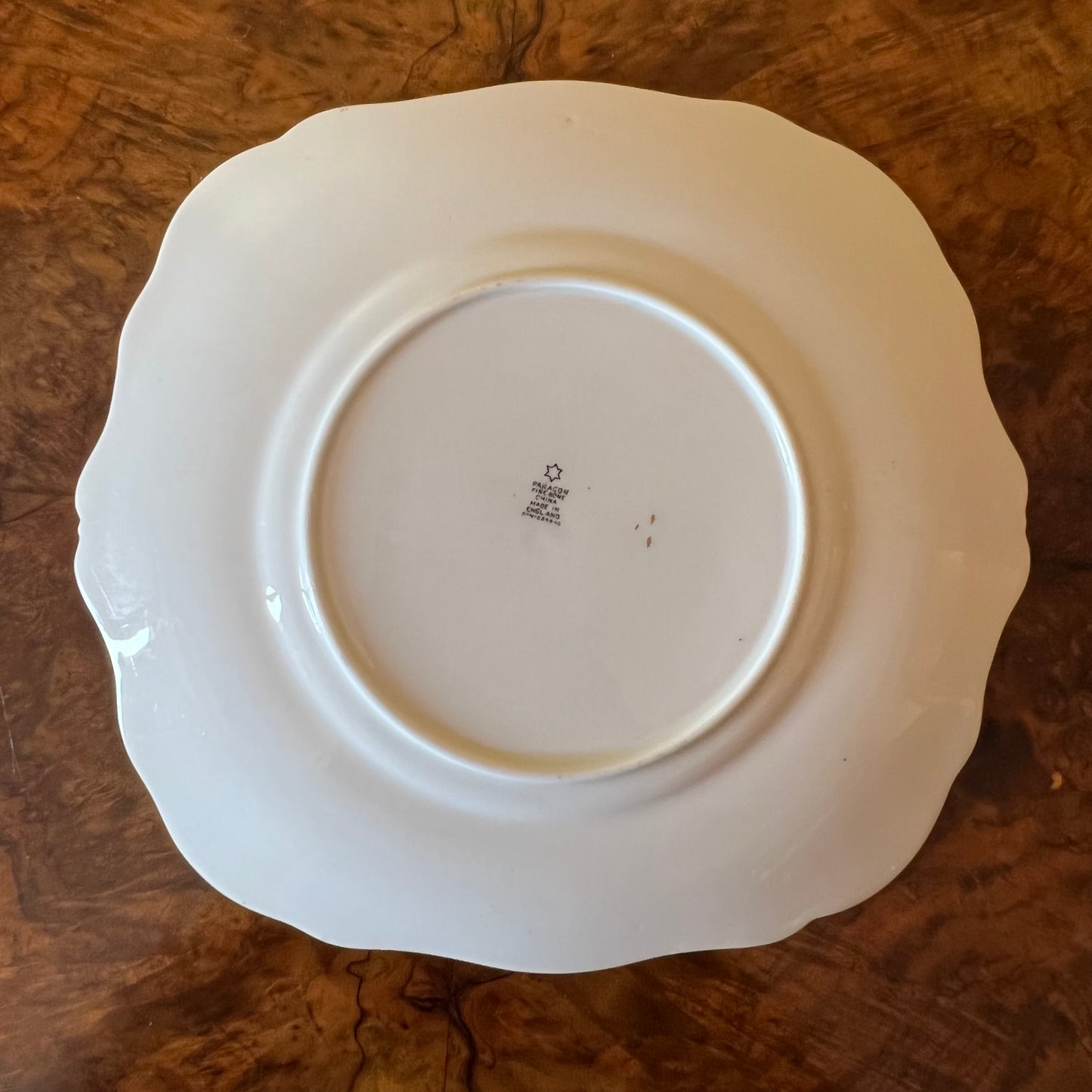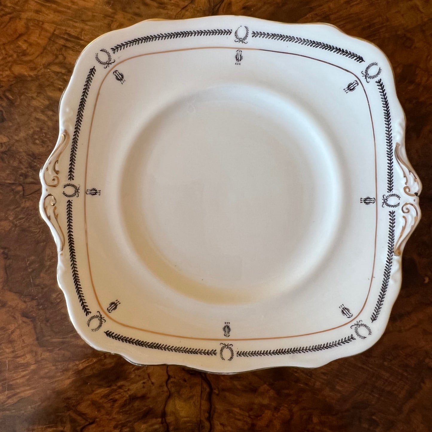 Description: Black wreath print with gold trim, gold trimming has faded and staining in stone parts, stamped Paragon