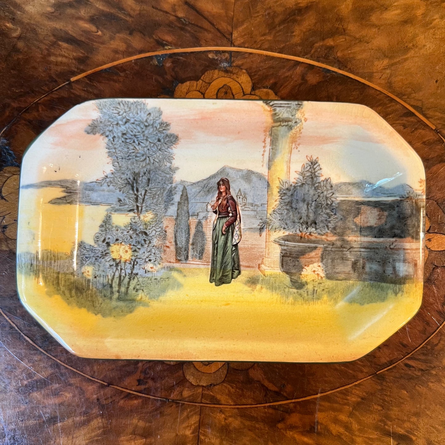 Description: Shakespeare collection Juliet print dish, crazing to dish, stamped Royal Doulton Juliet
