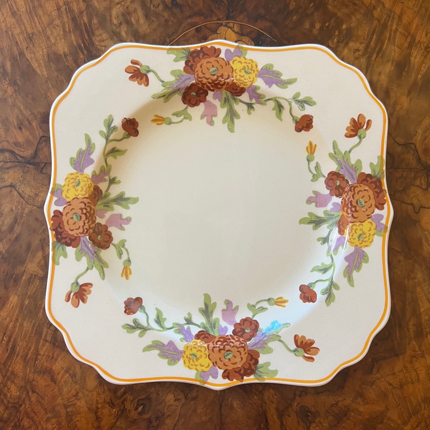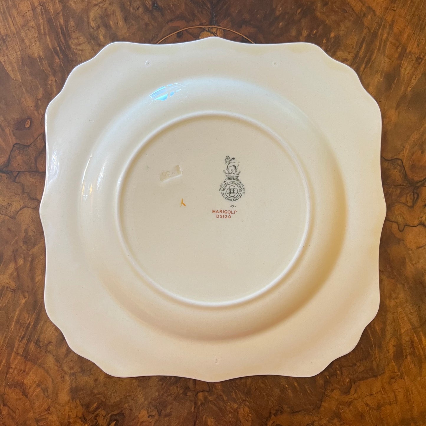 Description: Brown, yellow and orange print, slight wear to print, stamped Royal Doulton Marigold