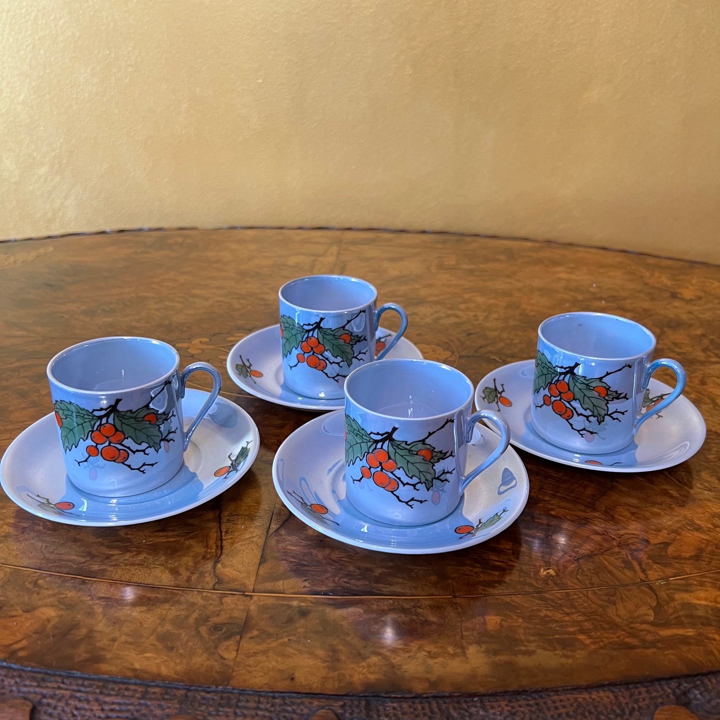 Vintage Victoria Christmas Coffee Demitasse Cup & Saucer Set Of Four