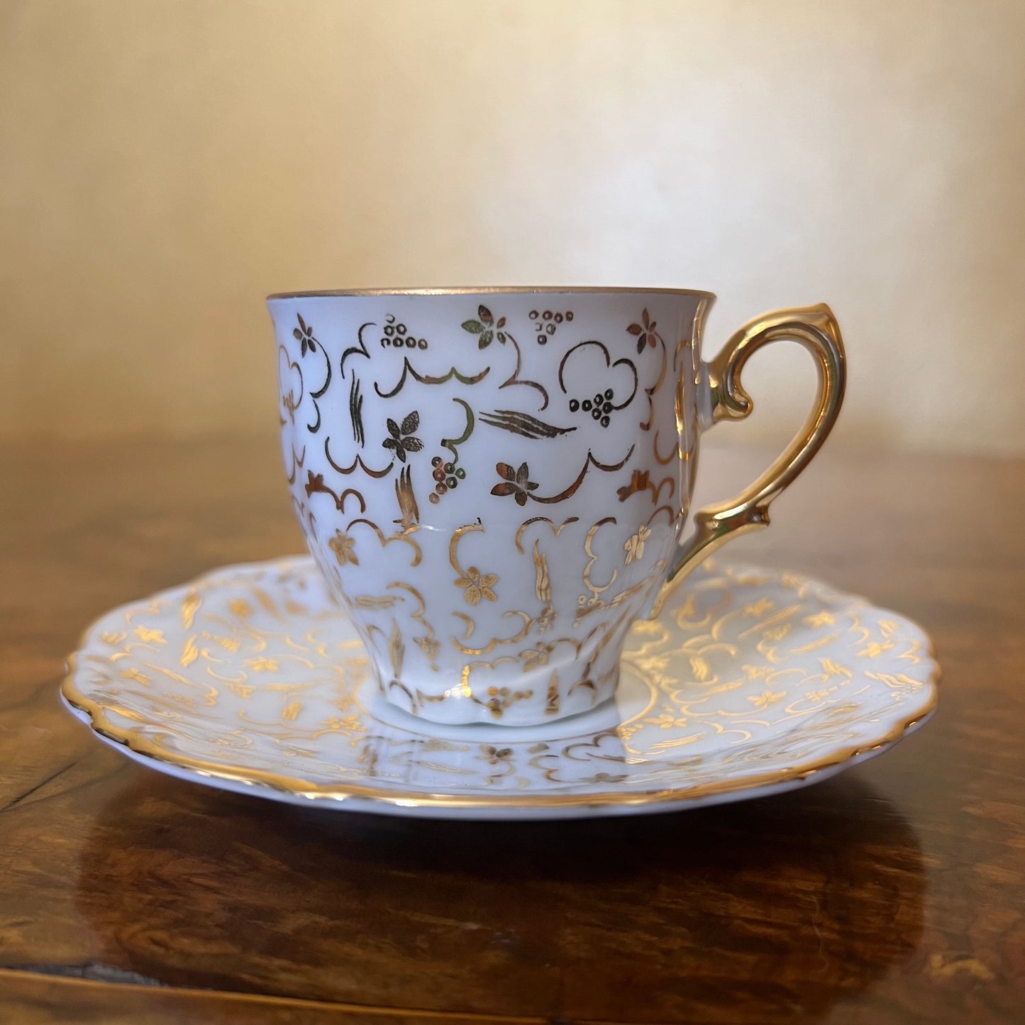Vintage Victoria German Gold Floral Demitasse Coffee Cup & Saucer 12 Piece Set
