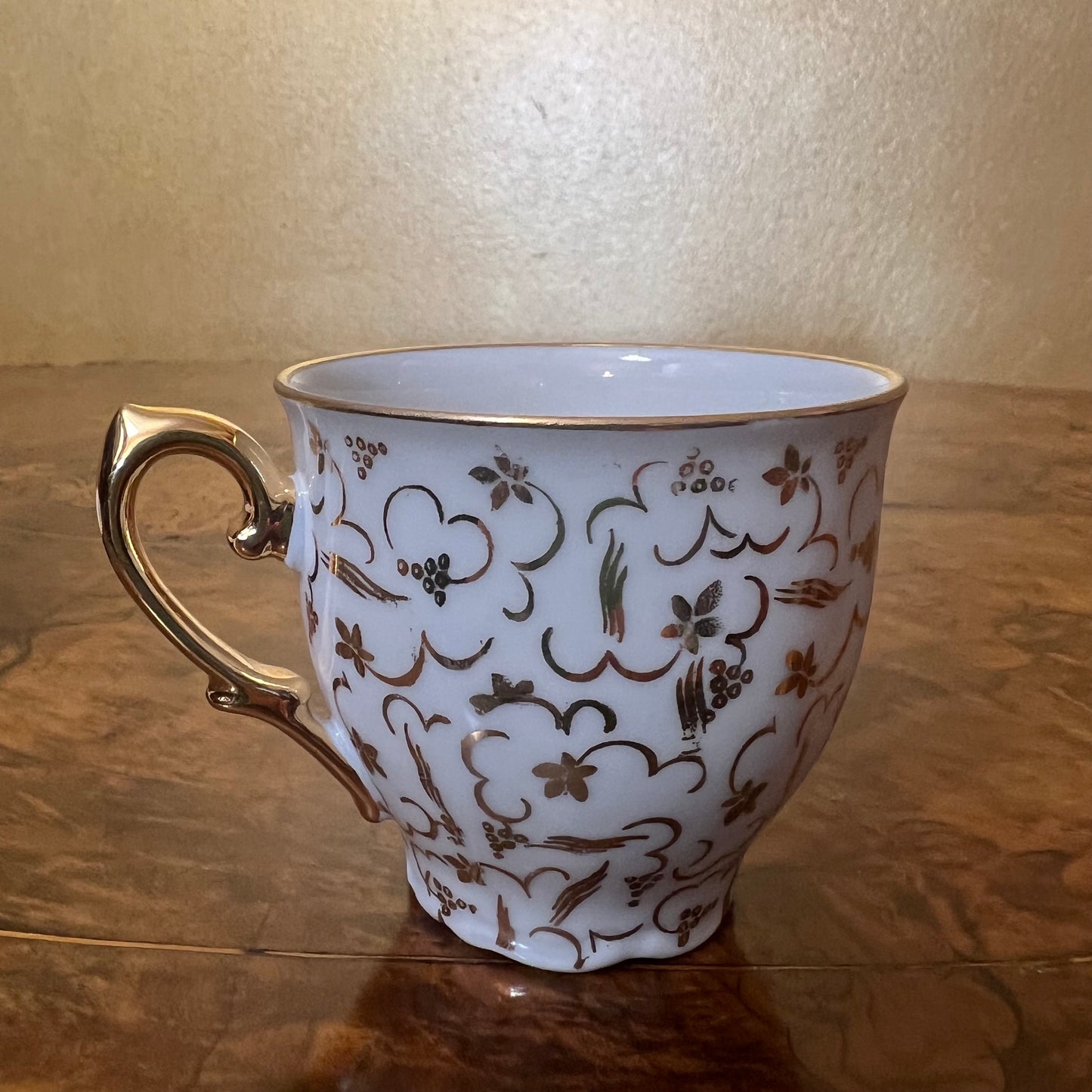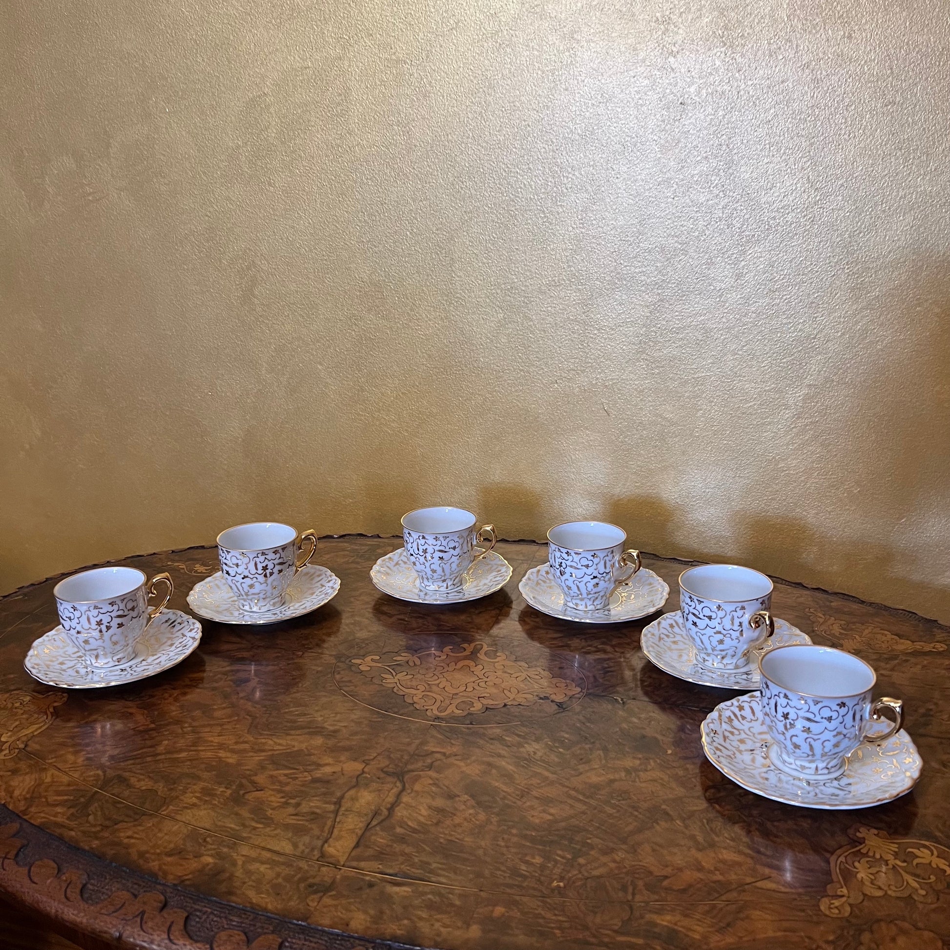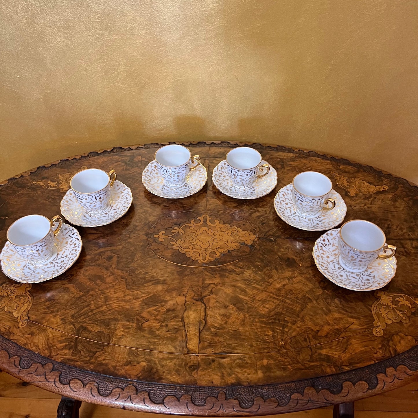 02612Vintage Victoria German Gold Floral Demitasse Coffee Cup & Saucer 12 Piece Set