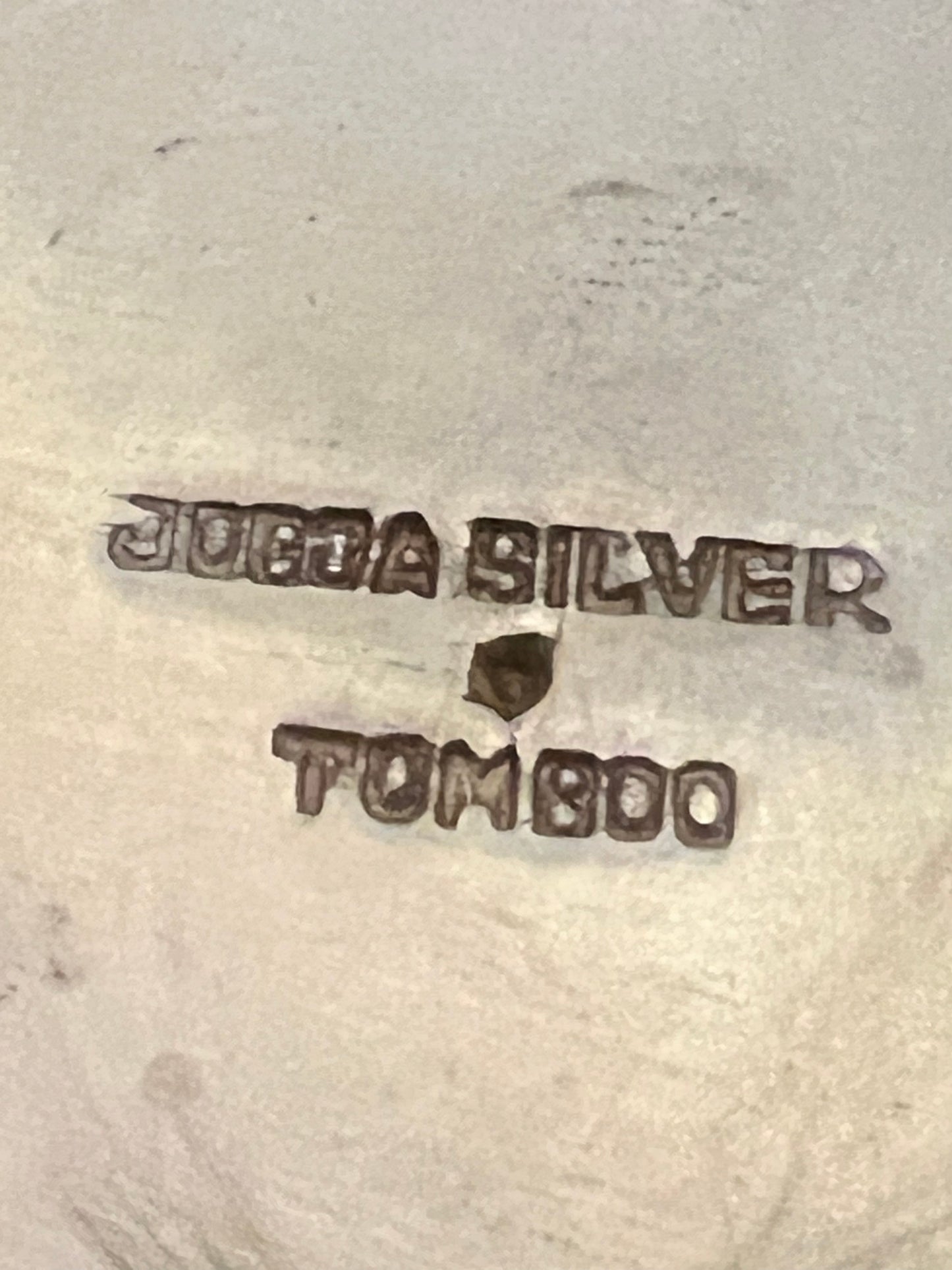 Description: Detailed design sugar bowl base and side, has a flower top handled, marked silver 800. weight 275grams