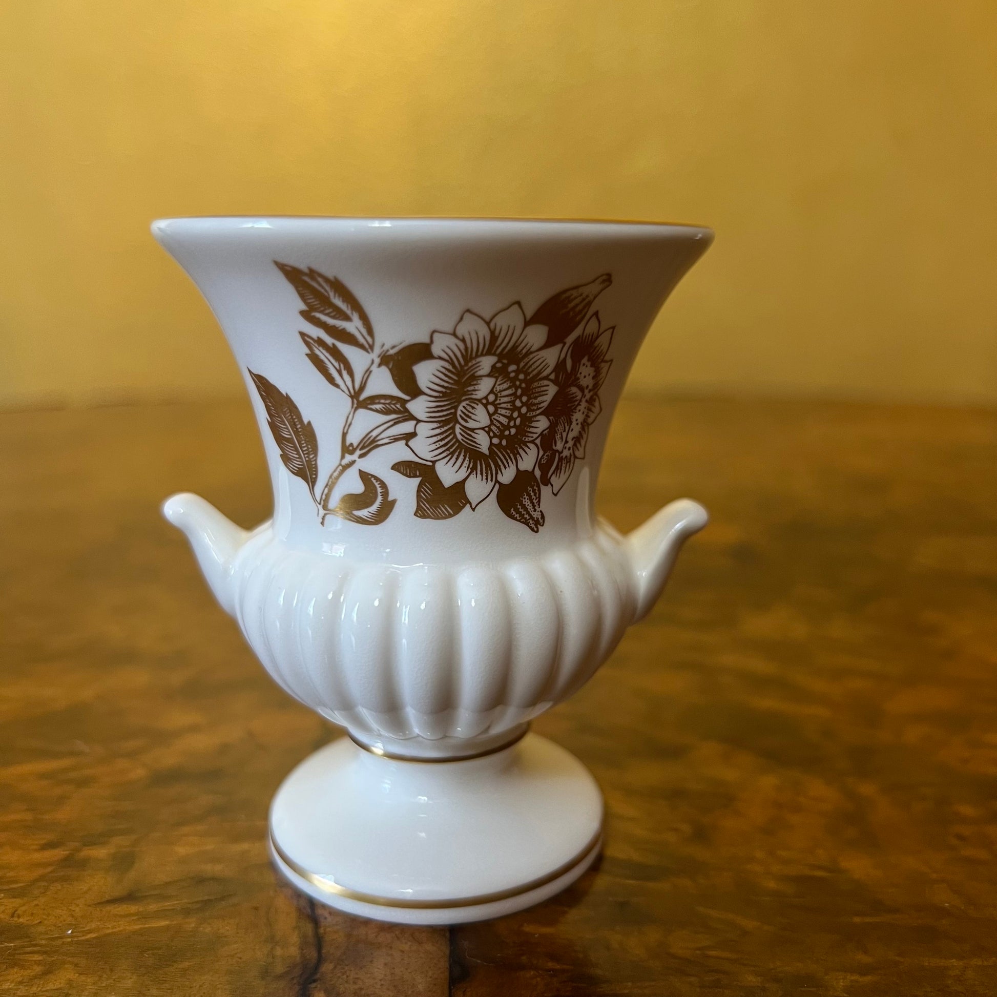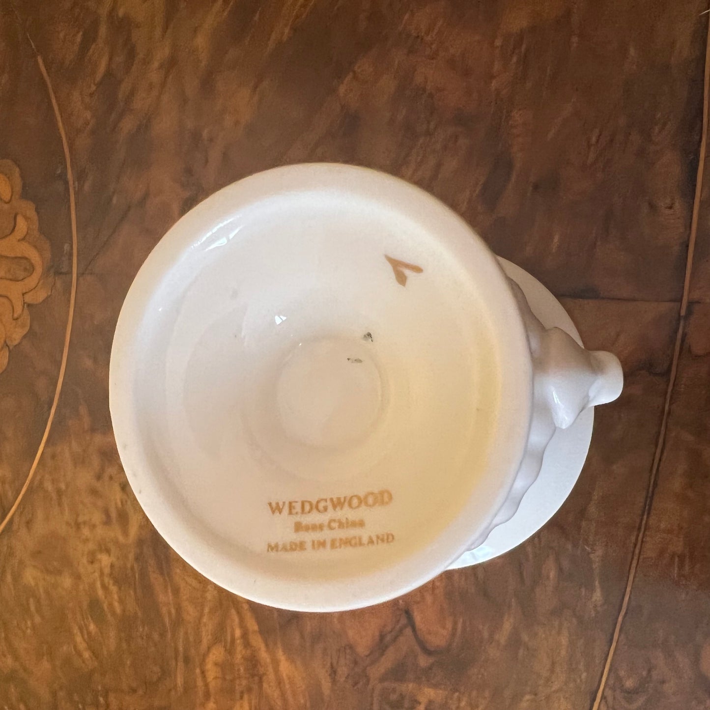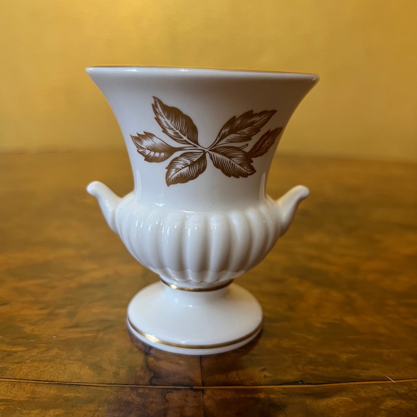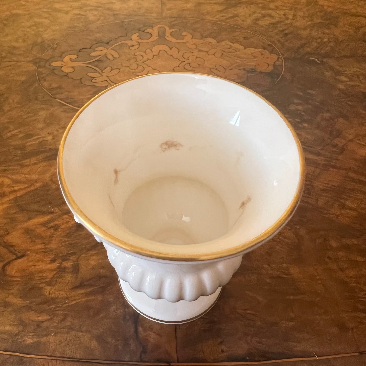 Description: Gold floral print with gold rim, there are some stains inside the urn, stamped Wedgwood